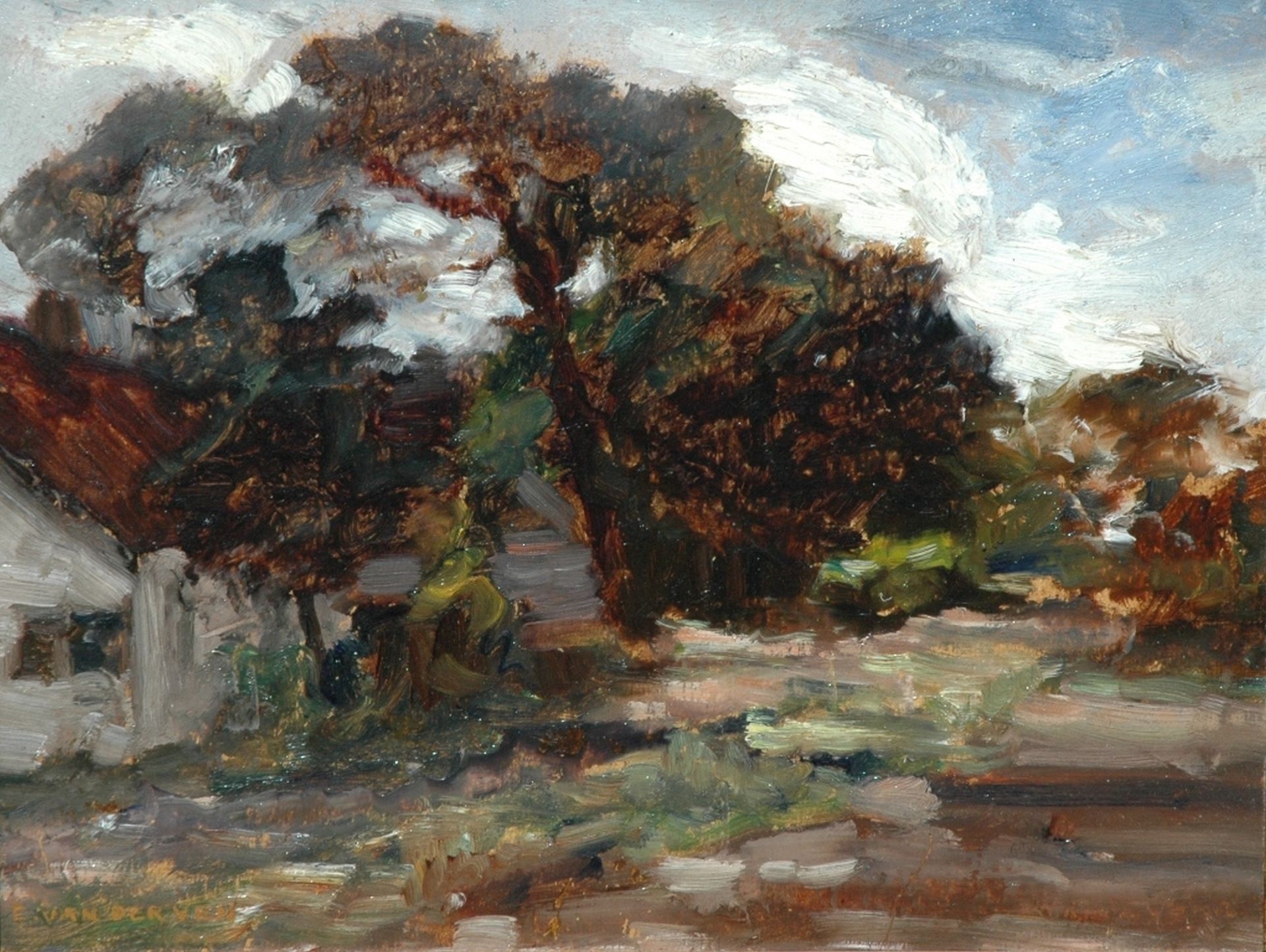 Manus van der Ven Kunstwerk • Gemälde • zuvor zu verkaufen Landscape with a farmhouse and figures