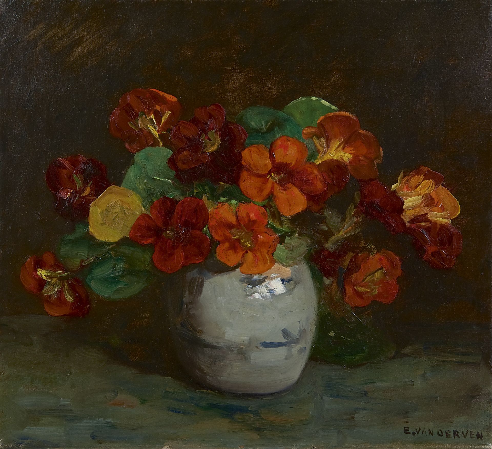 Manus van der Ven Kunstwerk • Gemälde • zuvor zu verkaufen Nasturtium in a Cologne pot
