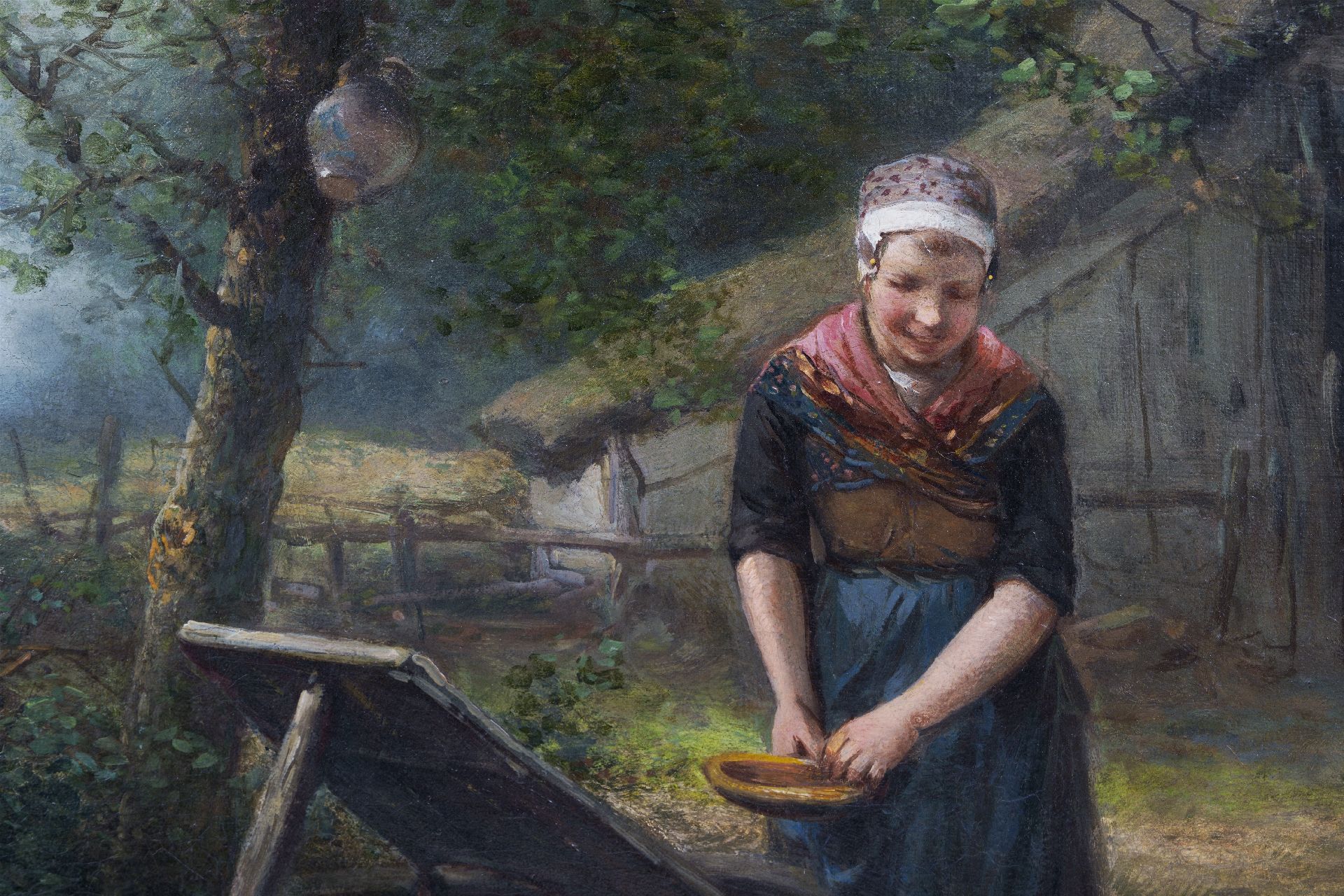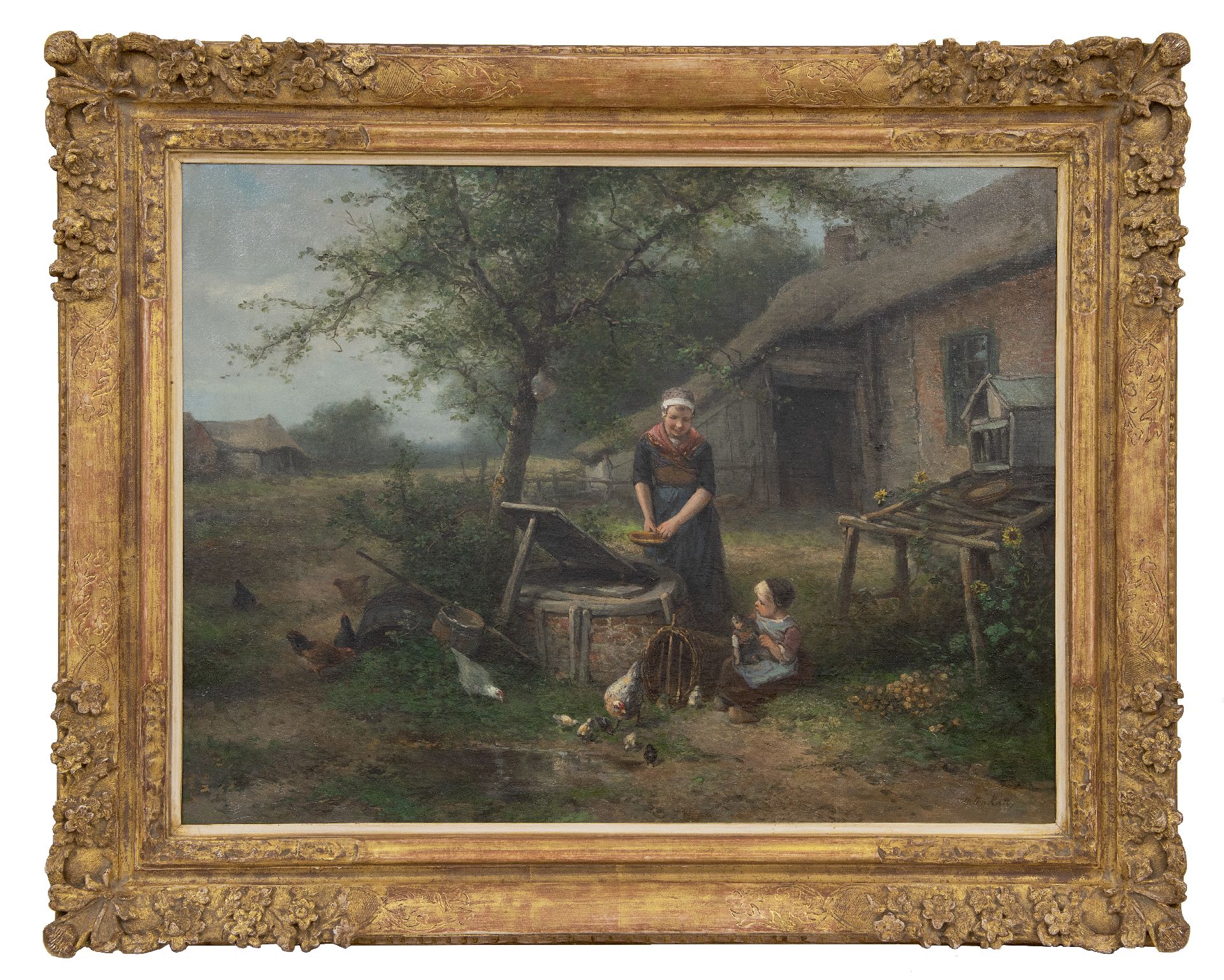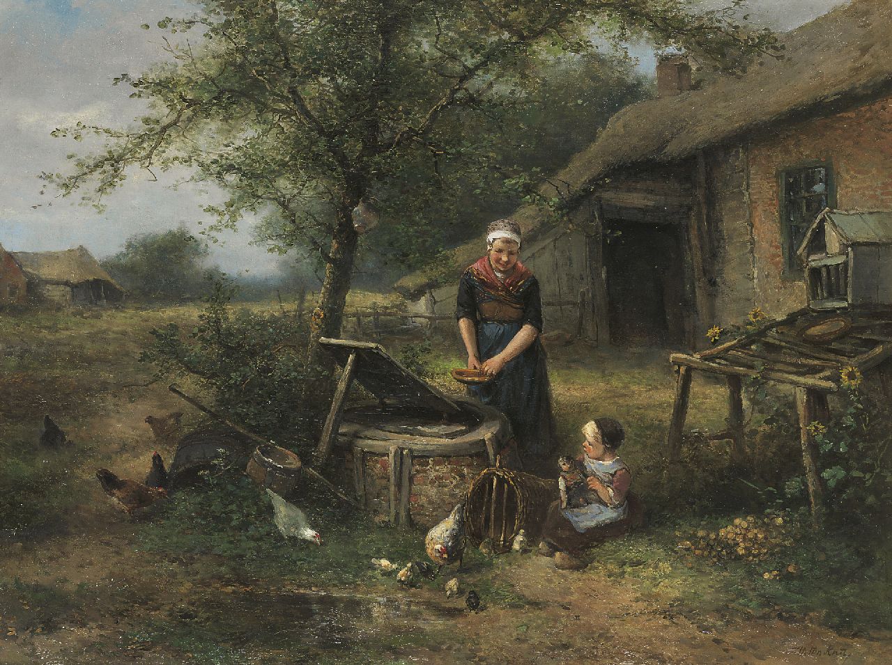 Mari ten Kate Kunstwerk • Gemälde • zuvor zu verkaufen Mutter und Tochter beim Hausbrunnen