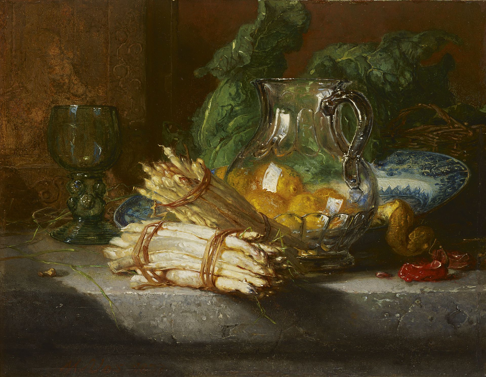 Maria Vos Kunstwerk • Gemälde • zuvor zu verkaufen A still life with asparagus and lemons