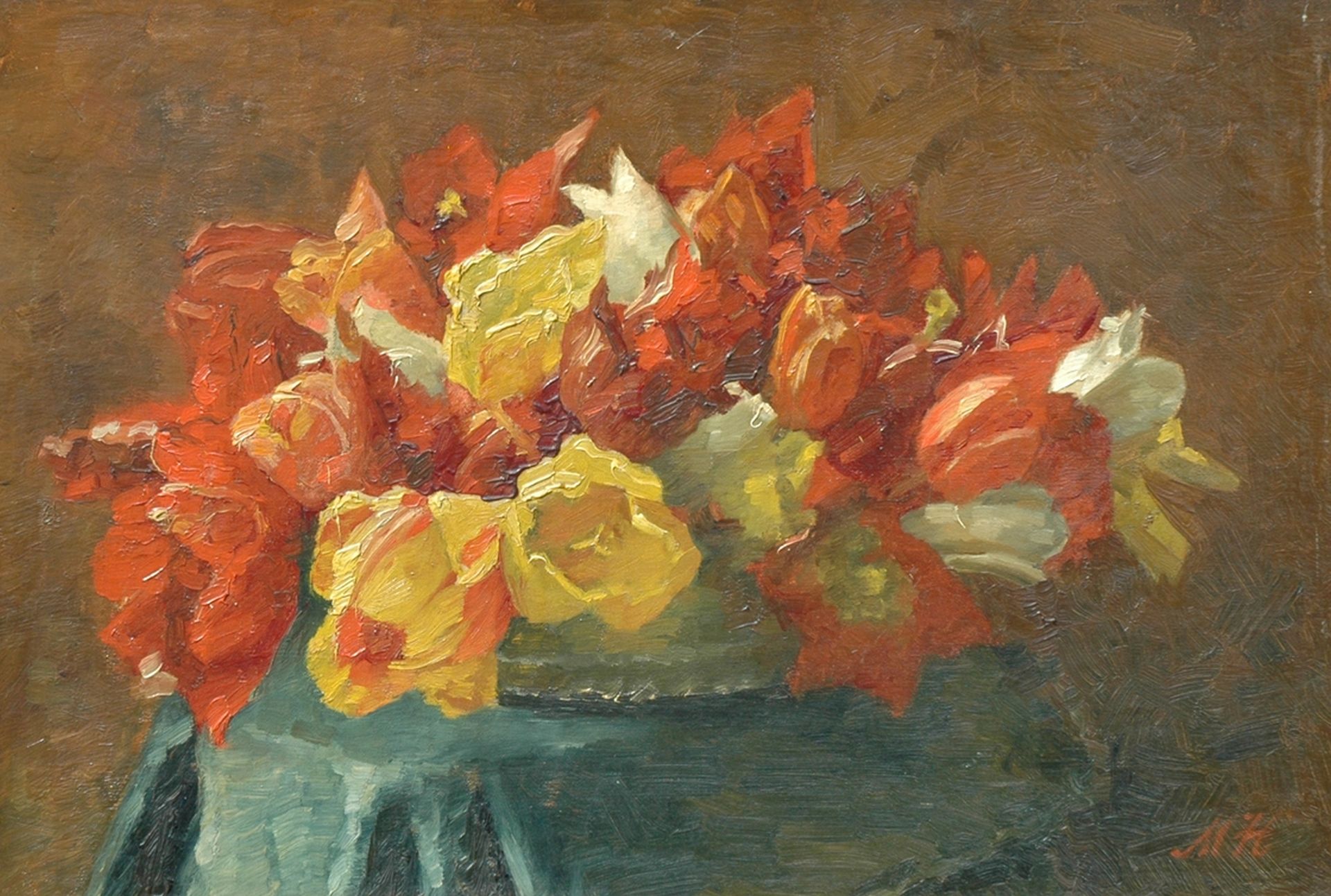 Öl auf Leinwand auf Holzfaser 37,2 x 53,9 cm, signed l.r. with tulips