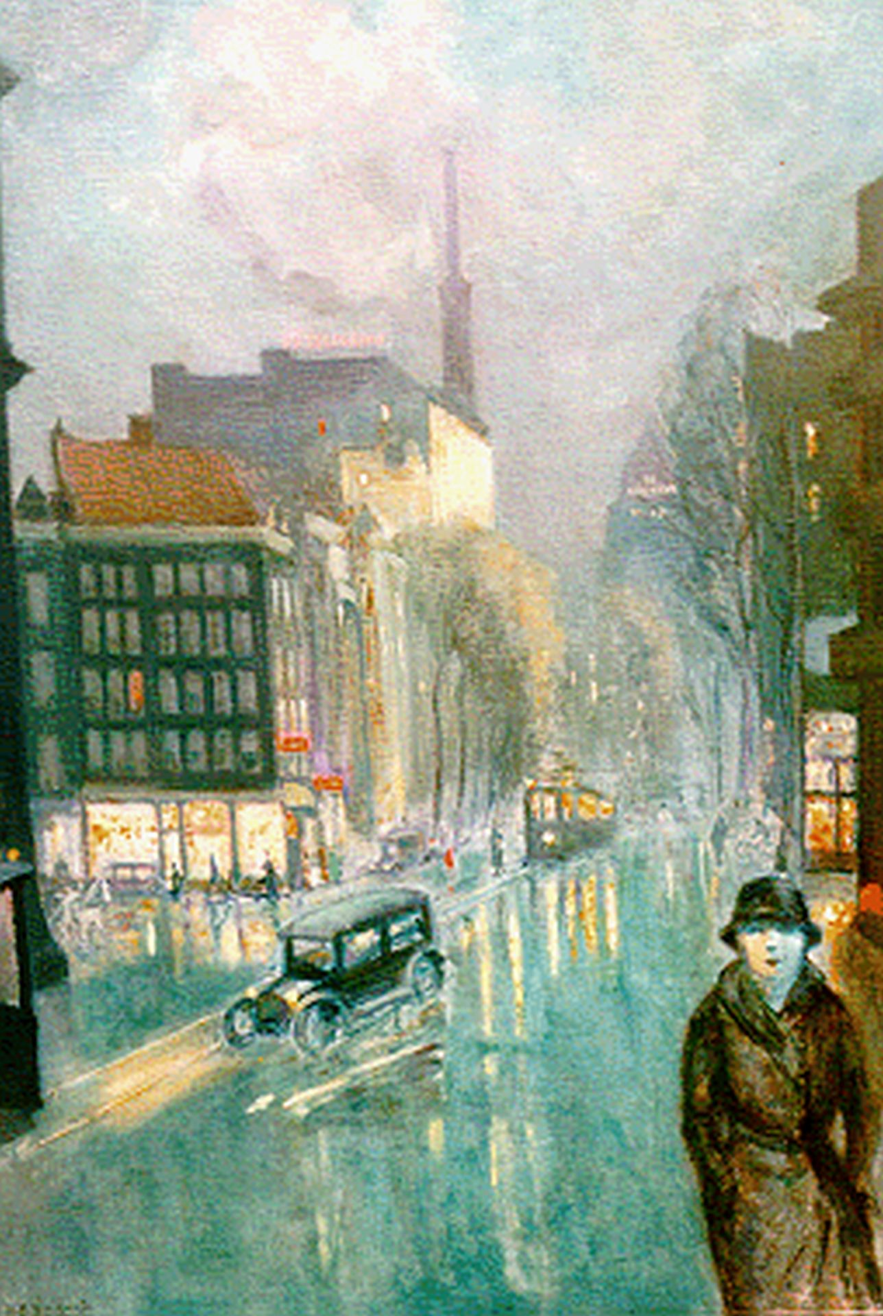 Marie Henri Mackenzie Kunstwerk • Gemälde • zuvor zu verkaufen View of the Niewezijds Voorburgwal, with the Telegraaf building beyond