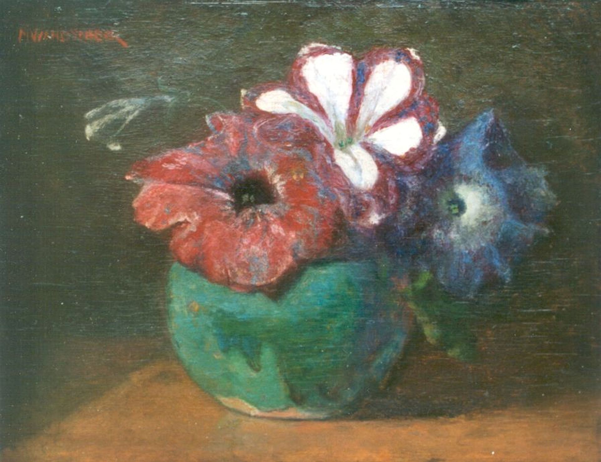 Marie Wandscheer Kunstwerk • Gemälde • zuvor zu verkaufen Petunien im Ingwertopf