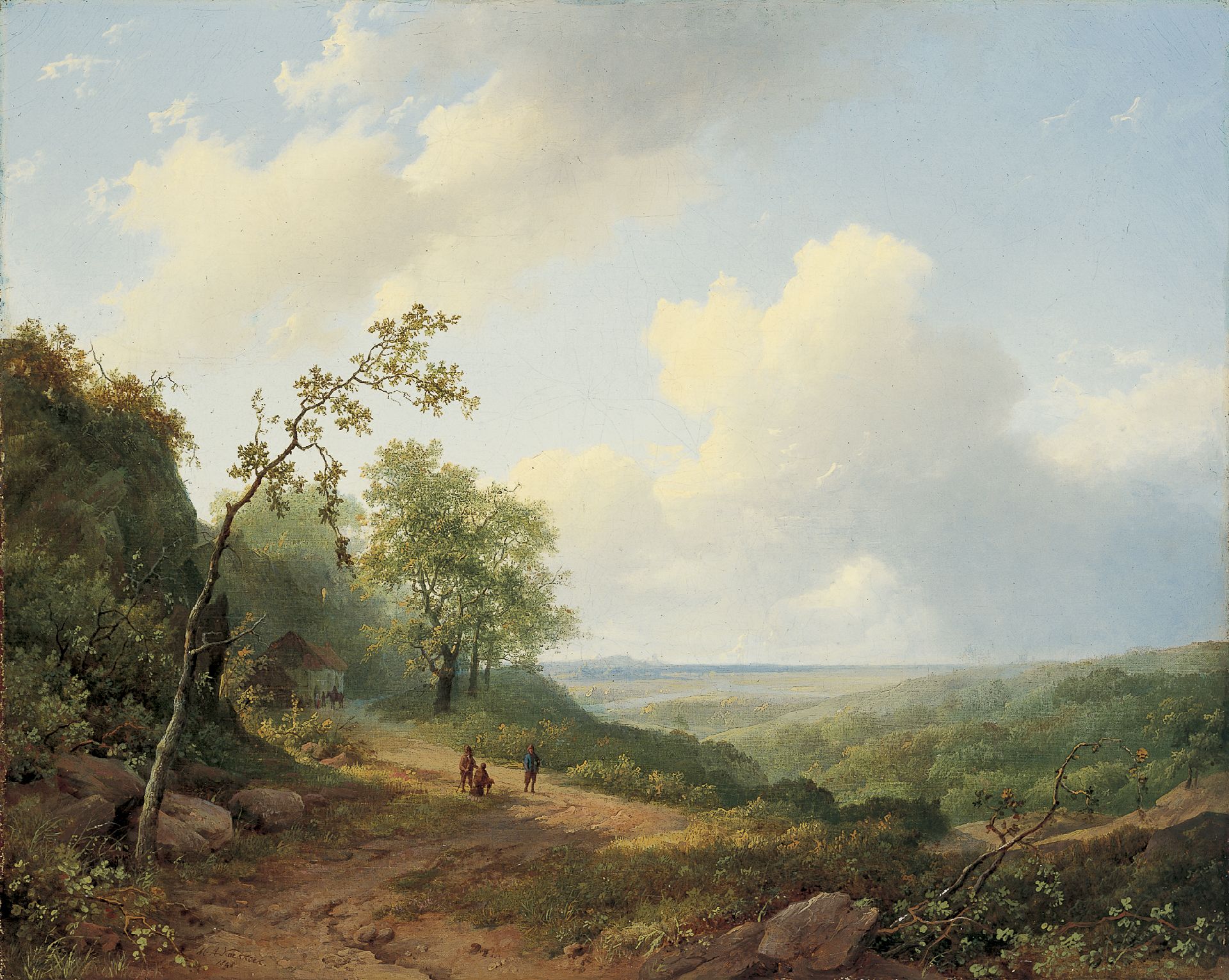 Marinus Adrianus Koekkoek I Kunstwerk • Gemälde • zuvor zu verkaufen A hilly landscape in summer