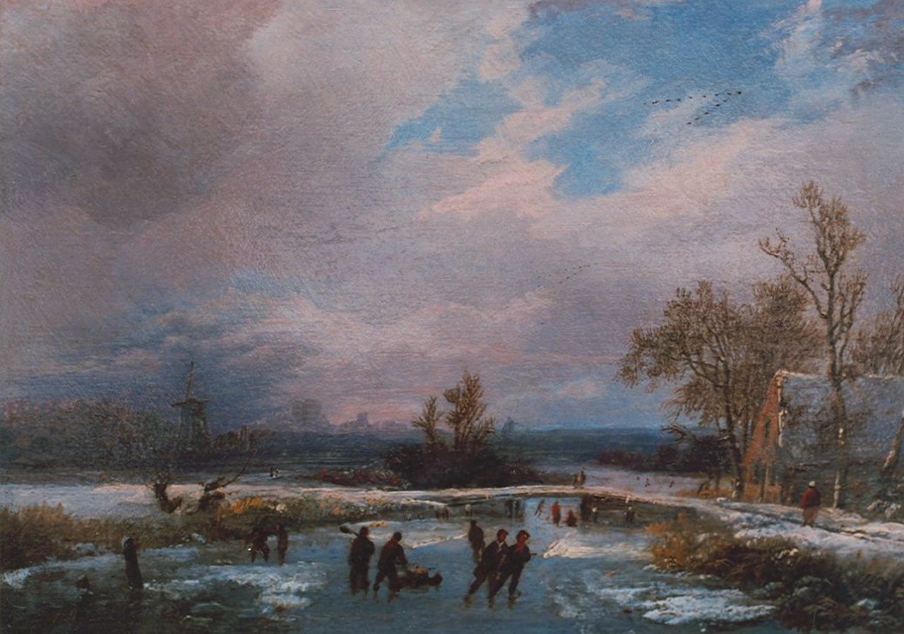 Marinus Adrianus Koekkoek I Kunstwerk • Gemälde • zuvor zu verkaufen Skaters on a frozen river