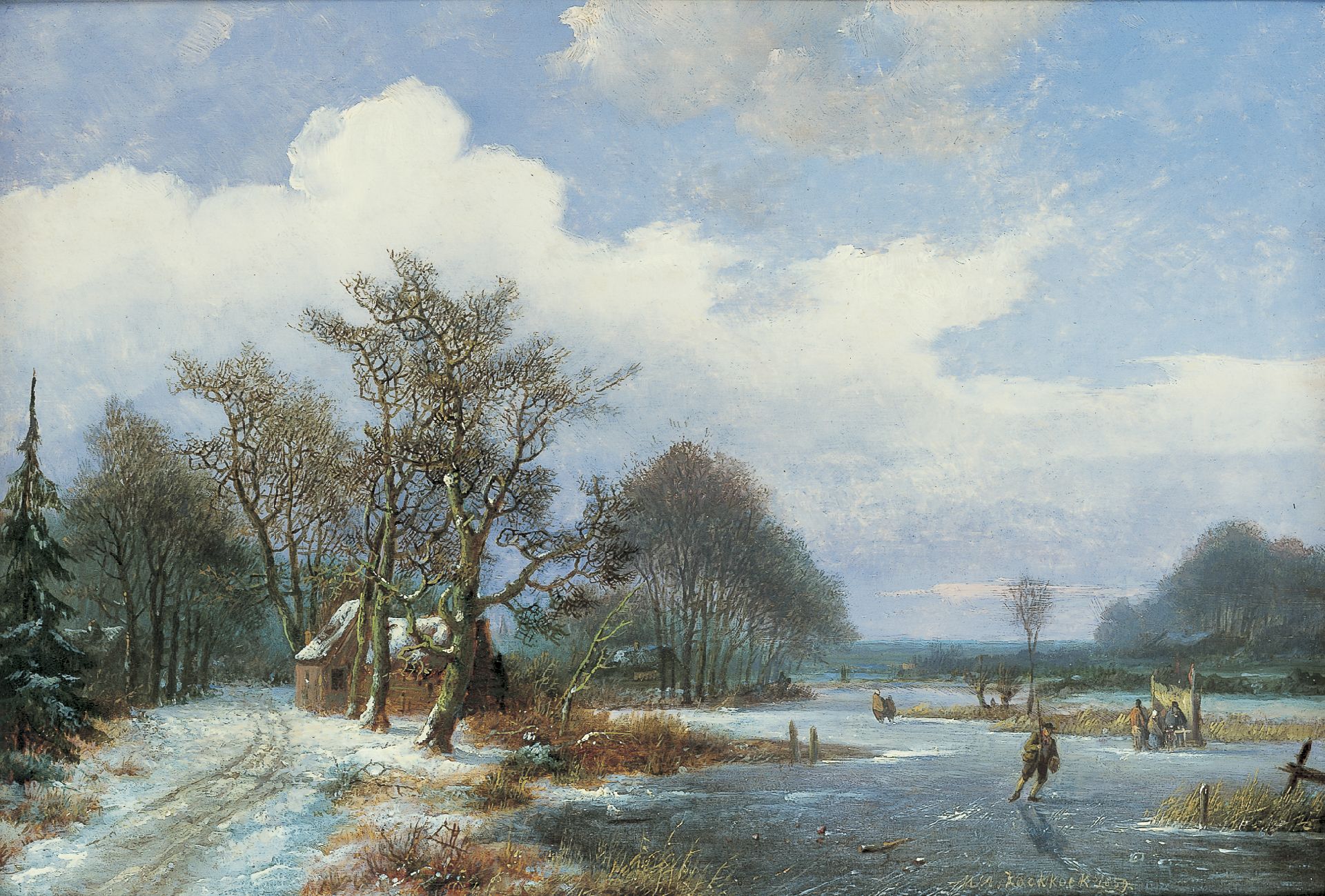 Marinus Adrianus Koekkoek I Kunstwerk • Gemälde • zuvor zu verkaufen Skaters on a frozen waterway