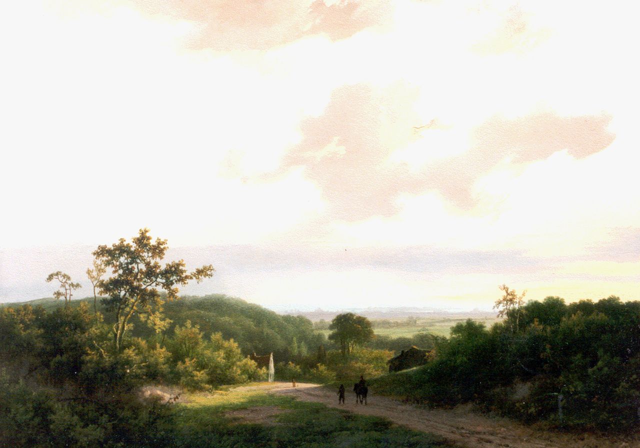 Marinus Adrianus Koekkoek I Kunstwerk • Gemälde • zuvor zu verkaufen Travellers in a panoramic landscape