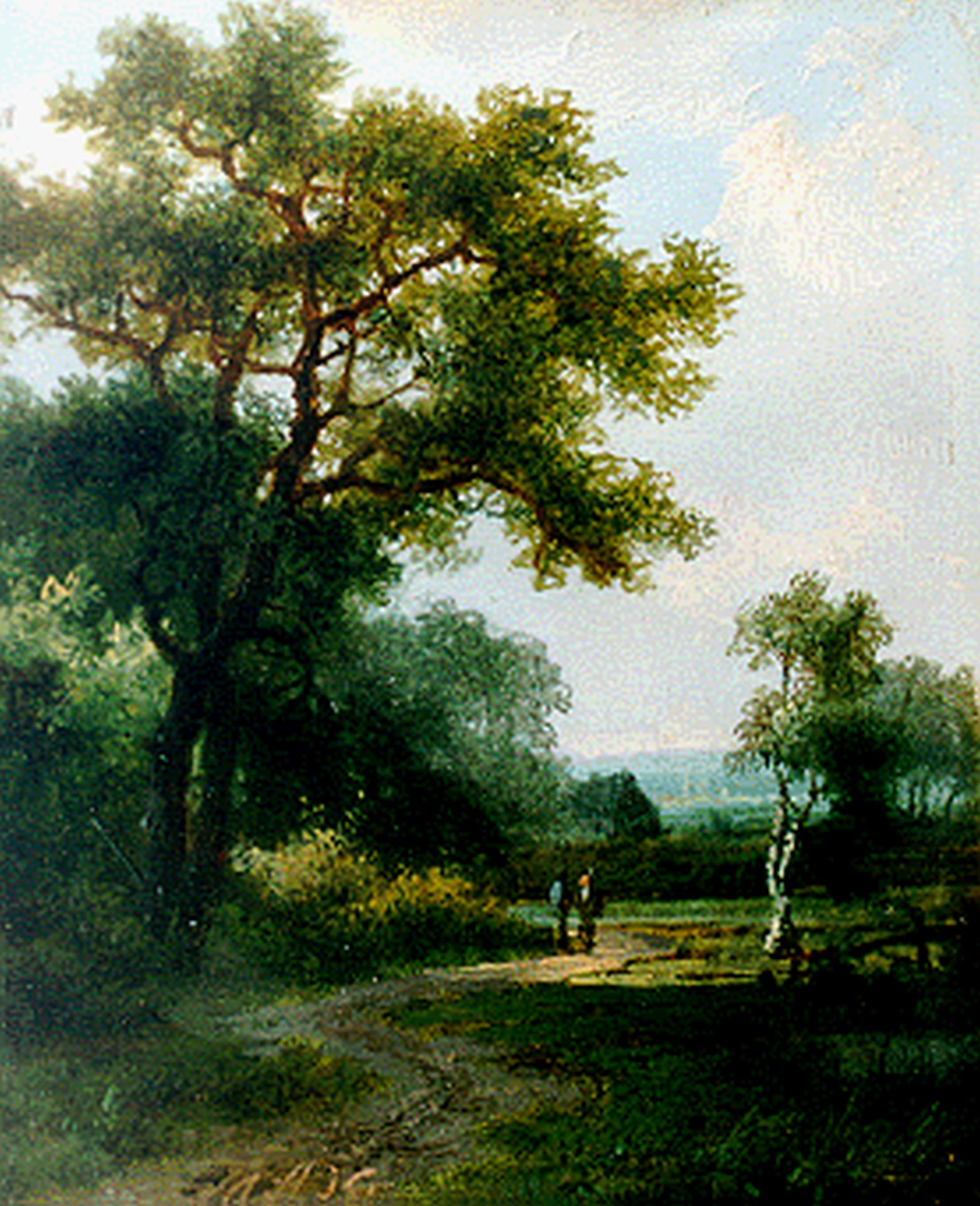 Marinus Adrianus Koekkoek I Kunstwerk • Gemälde • zuvor zu verkaufen Travellers in a wooded landscape