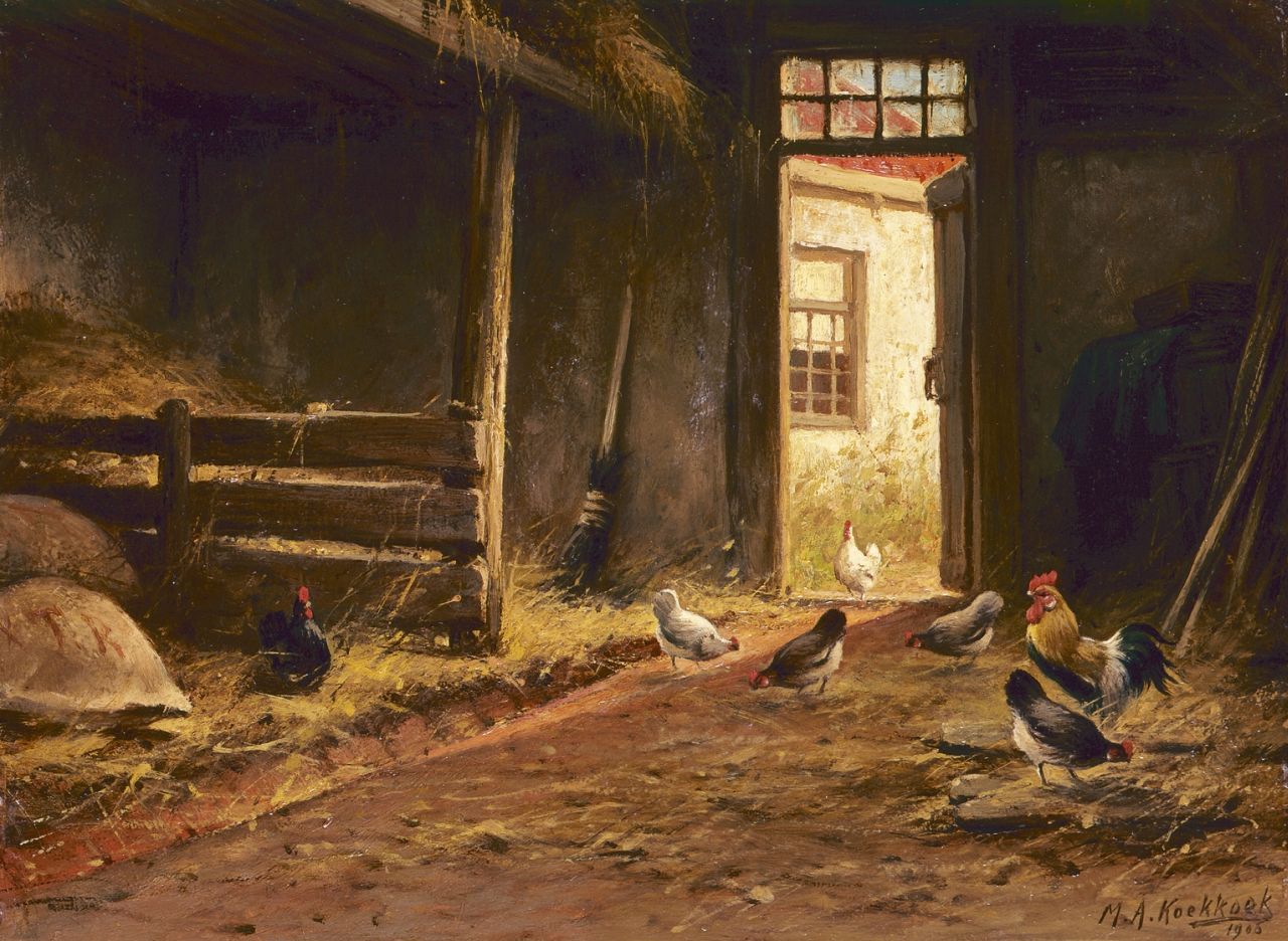 Marinus Adrianus Koekkoek II Kunstwerk • Gemälde • zuvor zu verkaufen Hühner im Stall