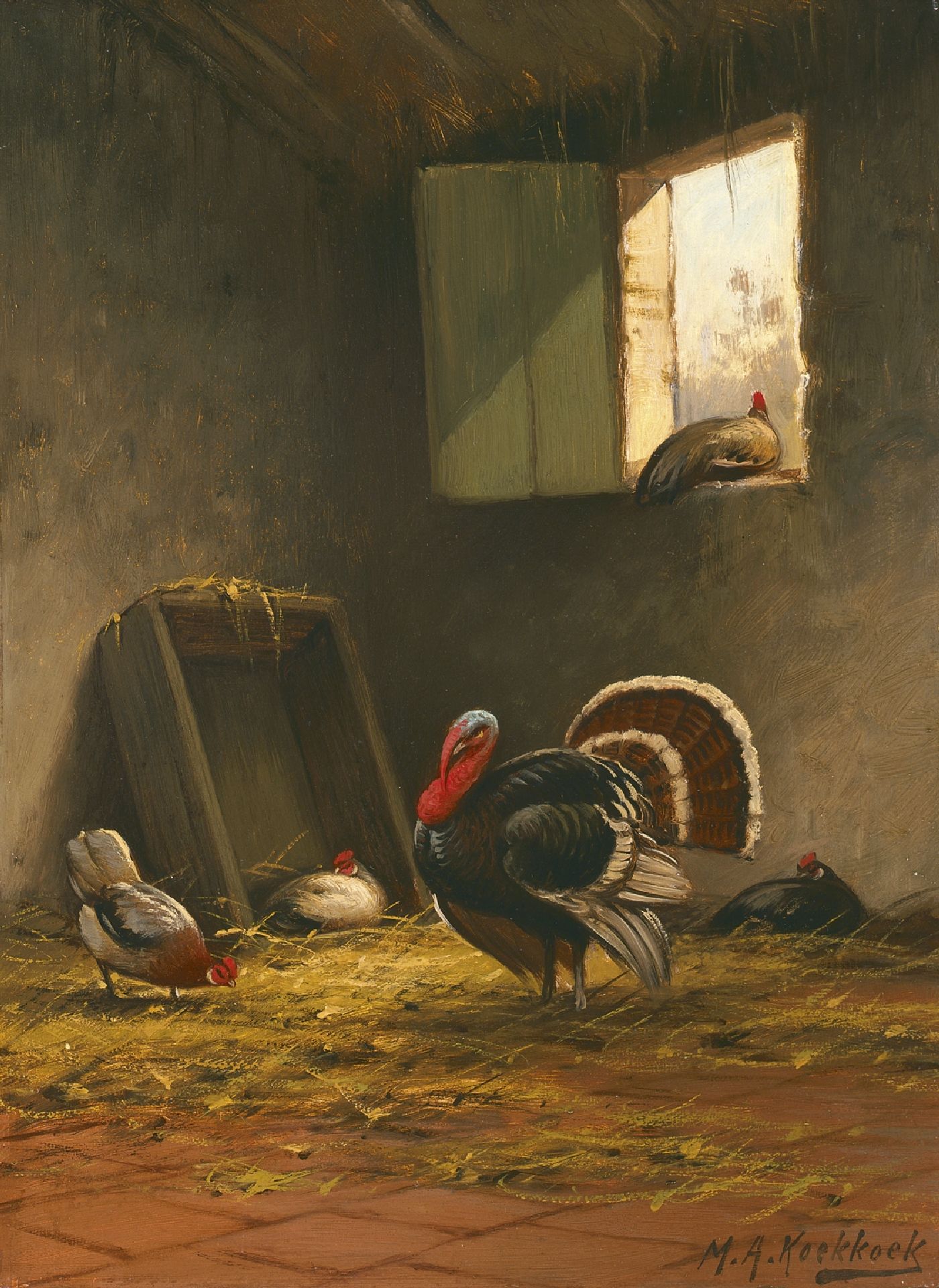 Marinus Adrianus Koekkoek II Kunstwerk • Gemälde • zuvor zu verkaufen Poultry in a stable