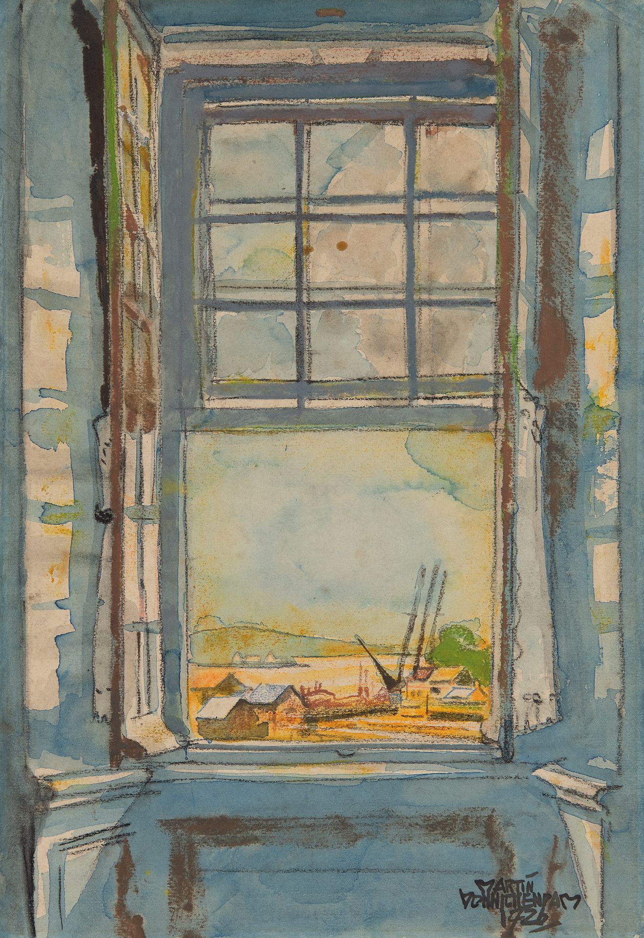 Martin Monnickendam Kunstwerk • Aquarell • Zeichnung • zu verkaufen View from a window