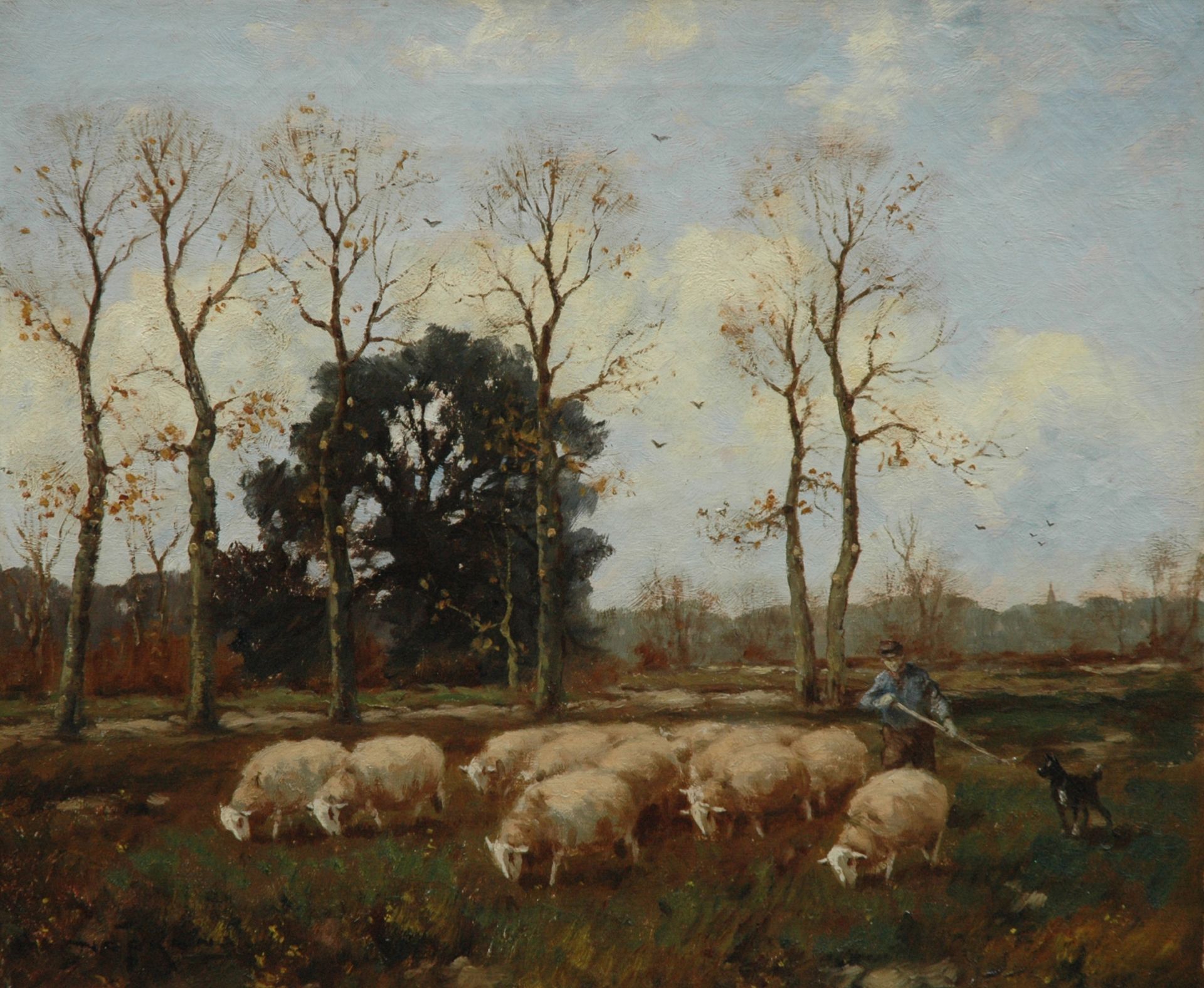 Martinus Nefkens Kunstwerk • Gemälde • zuvor zu verkaufen Shepherd with his dog and sheep