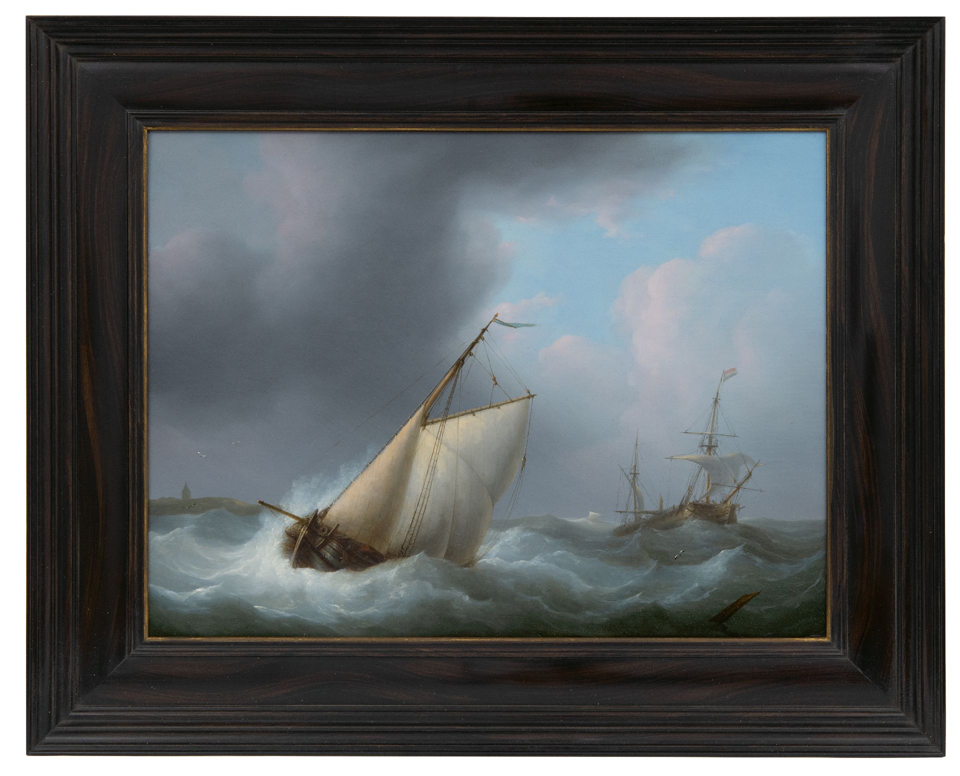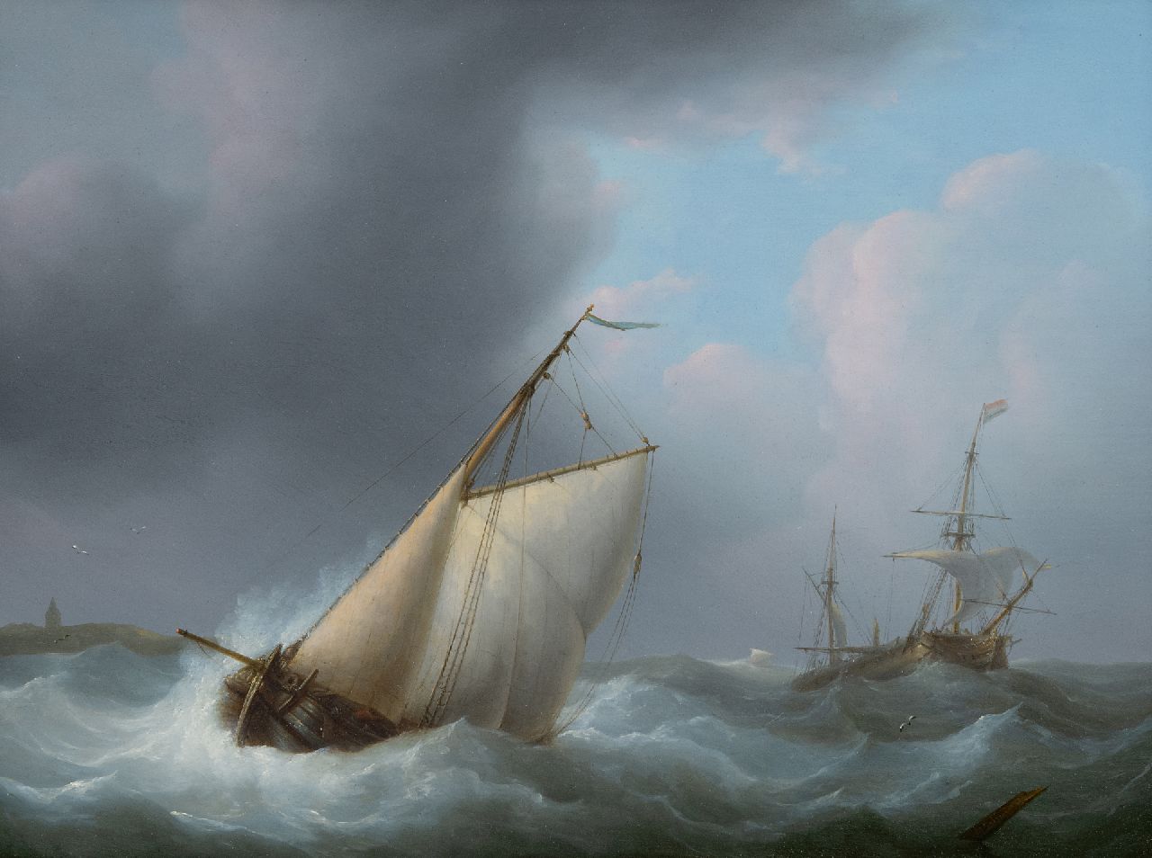 Der Dordrecht-Marinemaler Martinus Schouman war der Sohn eines Lastkahnskippers. Nach einigen Stunden bei Michiel Versteegh wurde er bei seinem berühmten Großonkel Aart Schouman in Den Haag in die Lehre geschickt. Danach ließ er sich als Seemaler in Dordrecht nieder. In dieser von Wasser umgebenen Stadt entwickelte er sich zu einem berühmten Marinemaler. Er bildete eine Reihe von Studenten aus, darunter das begabte J.C. Schotel, mit dem er mehrere historische Seestücke malte. Er nahm auch aktiv am Kunst- und Ausstellungsleben der Stadt teil und war Mitglied der Dordrecht-Zeichengesellschaft Pictura. Nachdem sein Sohn Izak Zeichenlehrer wurde am K.M.A. in Breda zog er 1839 ebenfalls in diese Stadt. Dort malte er weitere neun Jahre aktiv.