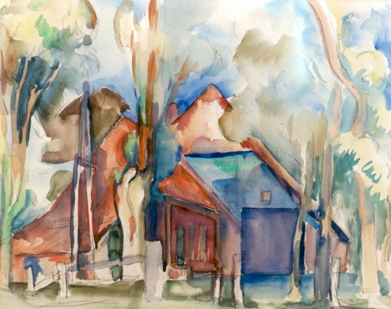 Matthieu Wiegman Kunstwerk • Aquarell • Zeichnung • zuvor zu verkaufen A farm yard