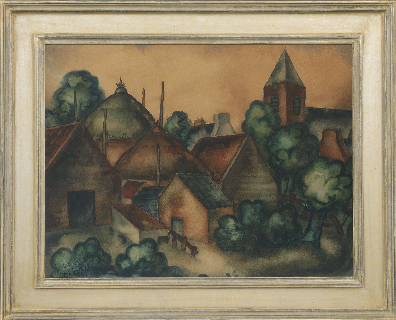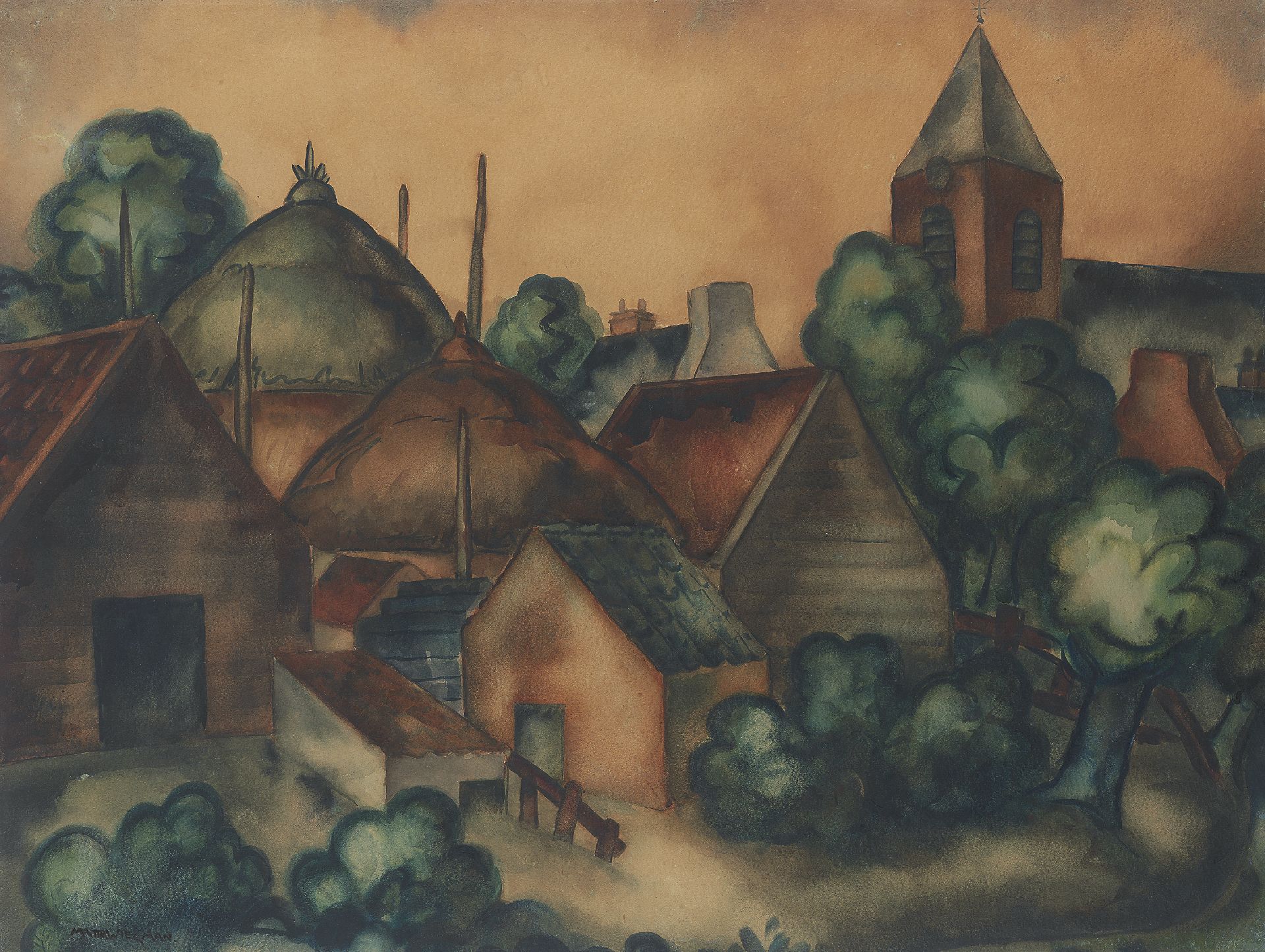 Matthieu Wiegman Kunstwerk • Aquarell • Zeichnung • zu verkaufen Dorfansicht
