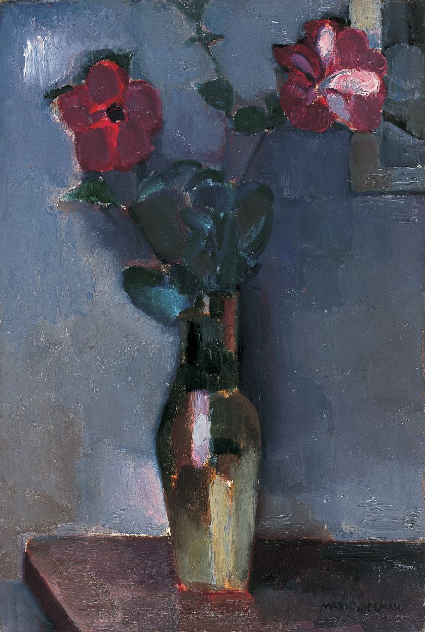 Matthieu Wiegman, Bruder von Piet Wiegman, war ein bedeutender niederländischer Expressionist. Er wurde an der Rijksacademie in Amsterdam ausgebildet und zog dann 1911 nach Bergen, wo er sich zu einem der führenden Maler der Bergener Schule entwickelte. Wiegman malte hauptsächlich Figuren, Landschaften und Stillleben. Seine Arbeiten zeigen manchmal den Einfluss des französischen Malers Cézanne in der Verwendung von warmen, fast fröhlichen Farben. In seinem späteren Leben verbrachte Wiegman viel Zeit in Frankreich. Er fertigte auch monumentale Wandmalereien, Mosaike und Buntglasfenster an, oft mit religiösen Motiven.