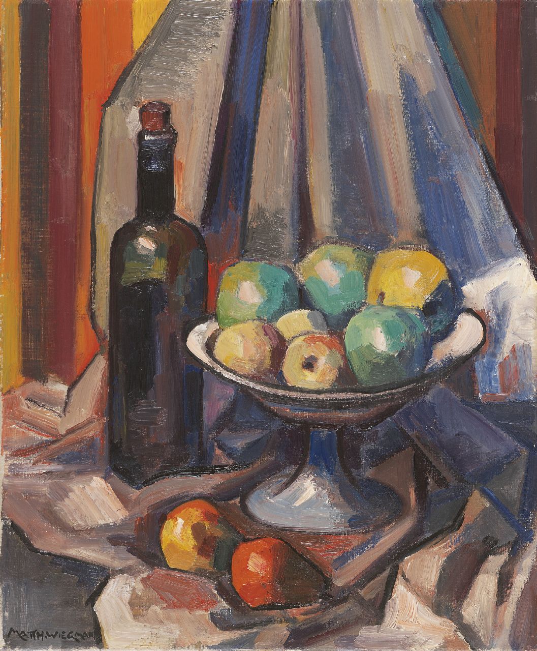 Matthieu Wiegman, Bruder von Piet Wiegman, war ein bedeutender niederländischer Expressionist. Er wurde an der Rijksacademie in Amsterdam ausgebildet und zog dann 1911 nach Bergen, wo er sich zu einem der führenden Maler der Bergener Schule entwickelte. Wiegman malte hauptsächlich Figuren, Landschaften und Stillleben. Seine Arbeiten zeigen manchmal den Einfluss des französischen Malers Cézanne in der Verwendung von warmen, fast fröhlichen Farben. In seinem späteren Leben verbrachte Wiegman viel Zeit in Frankreich. Er fertigte auch monumentale Wandmalereien, Mosaike und Buntglasfenster an, oft mit religiösen Motiven.