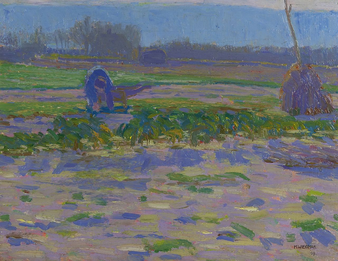Wiegman M.J.M.  | Mattheus Johannes Marie 'Matthieu' Wiegman, Bauer auf dem Feld, Öl auf Leinwand 32,3 x 41,6 cm, Unterzeichnet r. u. und datiert '09