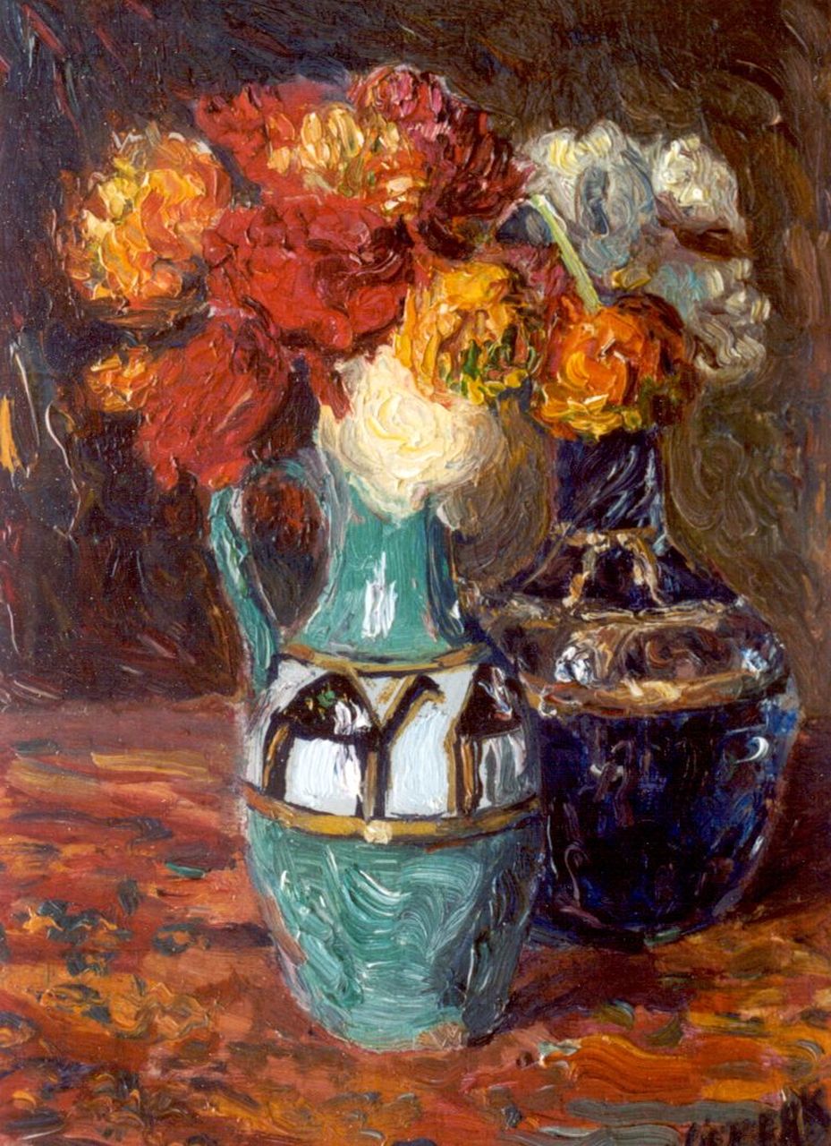 Maurits Niekerk Kunstwerk • Gemälde • zuvor zu verkaufen Still life of two vases with flowers