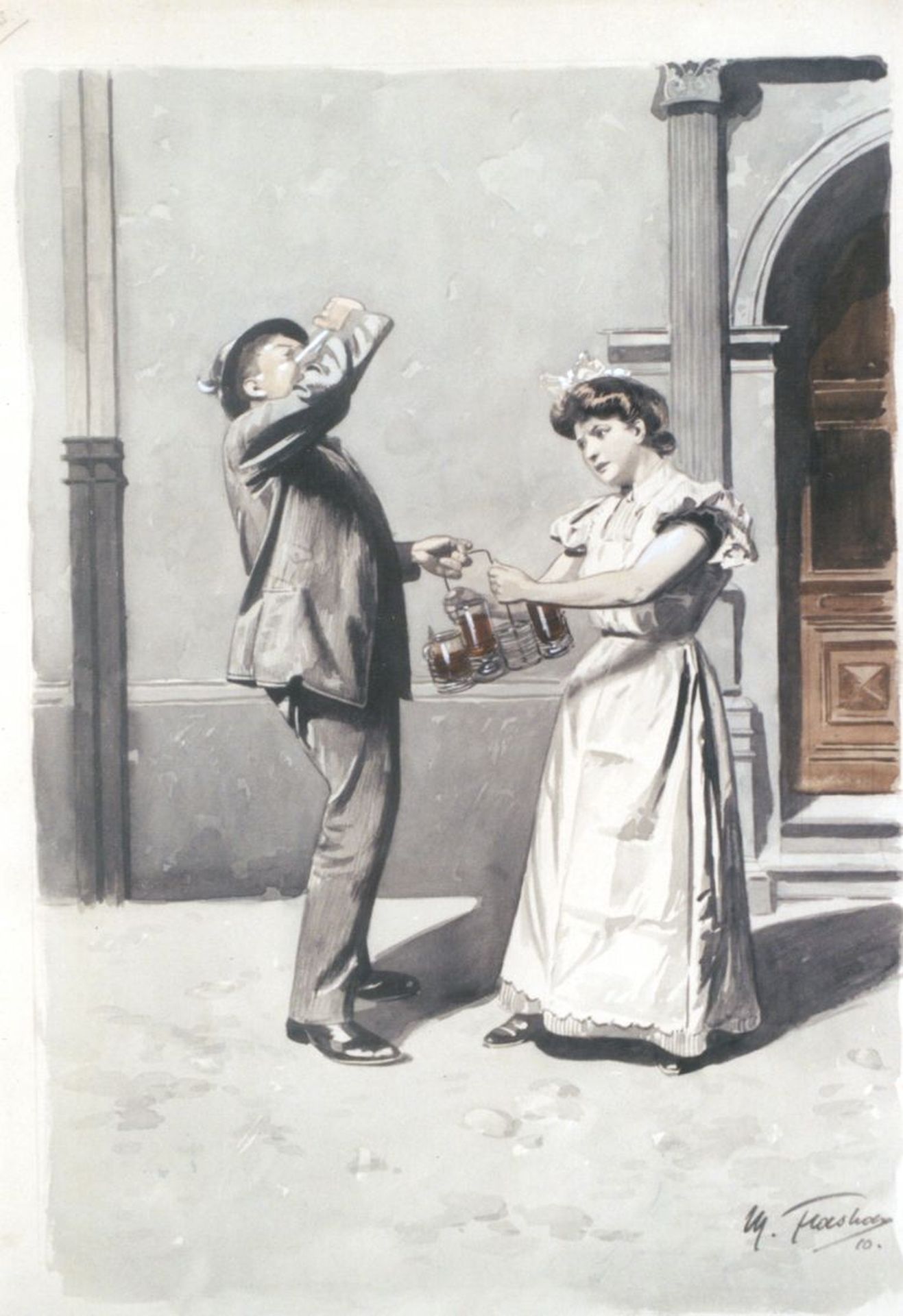 Der deutsche Künstler Max Flashar ist vor allem für seine humorvollen Genreszenen bekannt. Er porträtierte lieber das wohlhabende Bürgertum, gelegentlich angesiedelt in einem Umfeld des späten 18. Jahrhunderts. Flashar wurde an den Akademien in Weimar, München und Berlin ausgebildet und hielt sich zum Studium auch kurze Zeit in Paris auf. Neben den erwähnten Szenen malte Flashar eine Reihe von Porträts, darunter auch von Mitgliedern deutscher Königshäuser. Er war auch ein bekannter Plakatgestalter und Illustrator der 'Fliegenden Blätter', einer satirischen Wochenzeitung in München.