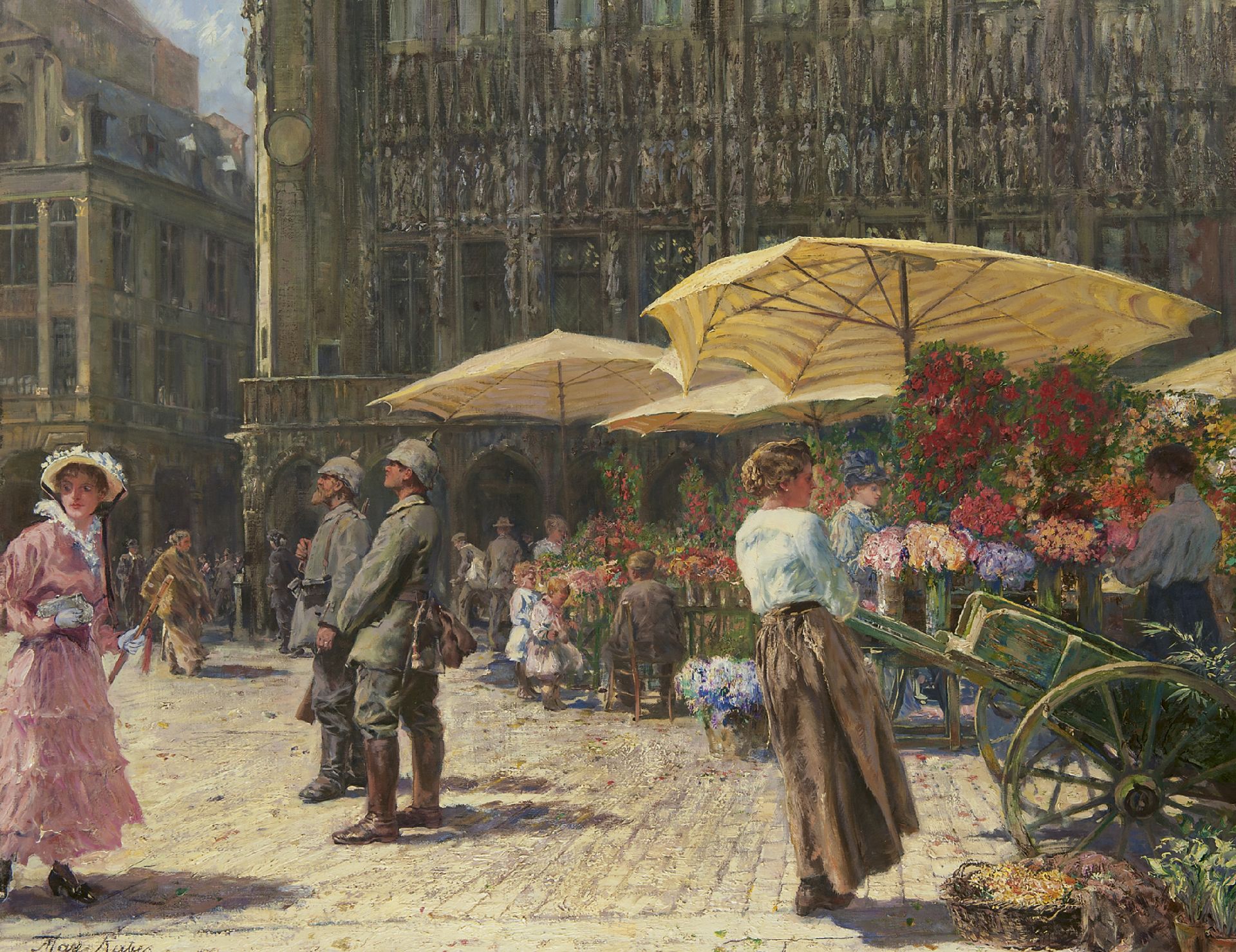 Max Rabes Kunstwerk • Gemälde • zuvor zu verkaufen Blumenmarkt in Brüssel