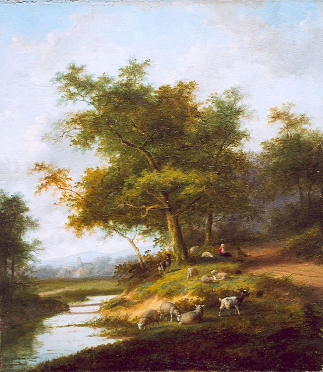 Morel II J.E./Van Severdonck F. Kunstwerk • Gemälde • zuvor zu verkaufen A shepherdess and flock