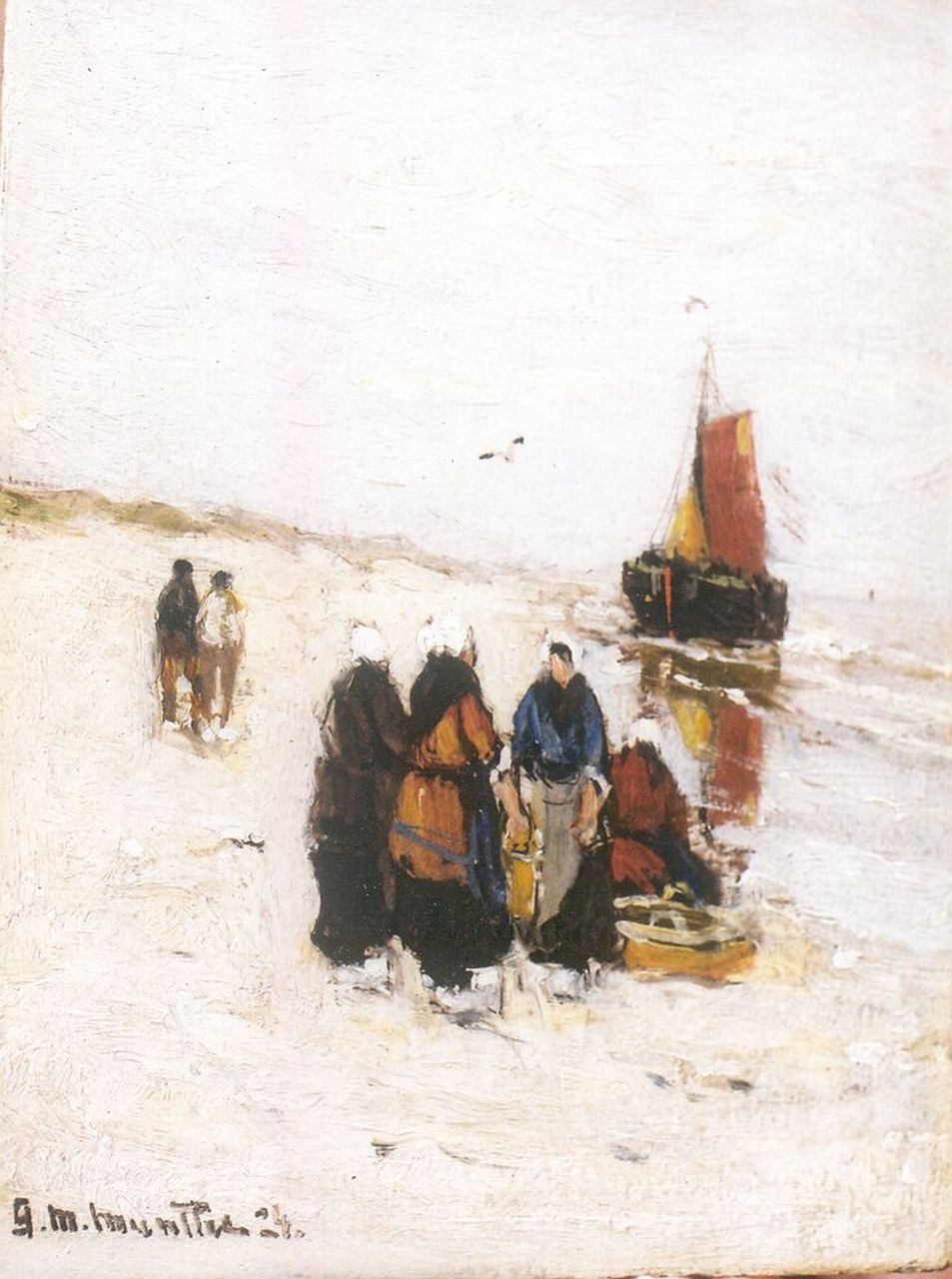 Der gebürtige Norweger Gerhard Munthe wurde an der Kunstakademie in Düsseldorf ausgebildet, wo er sich für das Malen von Strandszenen interessierte. 1901 ließ er sich im Fischerdorf Katwijk nieder, das bei den damaligen Malern beliebt war. Katwijk war eines der letzten Fischerdörfer an der niederländischen Küste, in denen noch vom Strand aus gefischt wurde. Der Umzug brachte ihn nahe an das Meer und den Strand, was viele Inspirationen für seine Bilder lieferte. Gerhard fügte seinem Namen schon früh das poetische norwegische Wort Morgenstjerne hinzu, um sich von seinem Onkel und Namensvetter Gerhard Peter Frantz Wilhelm Munthe, einem damals bekannten Landschaftsmaler, abzuheben.