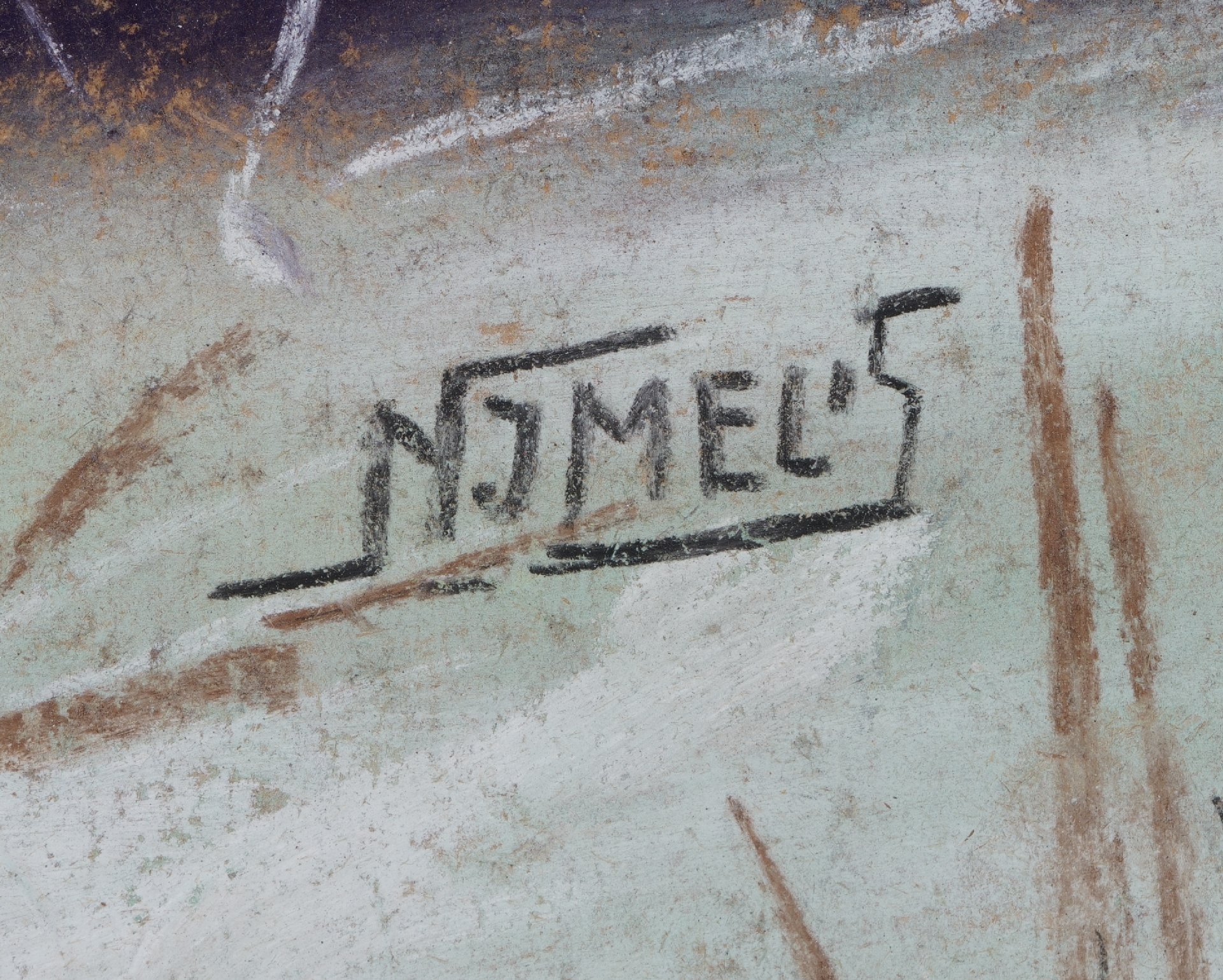 Kreide und Aquarell auf Holzfaser 48,8 x 41,0 cm, Unterzeichnet M.r.