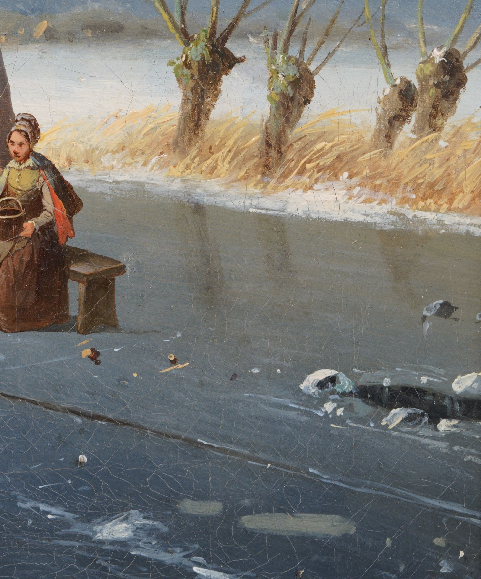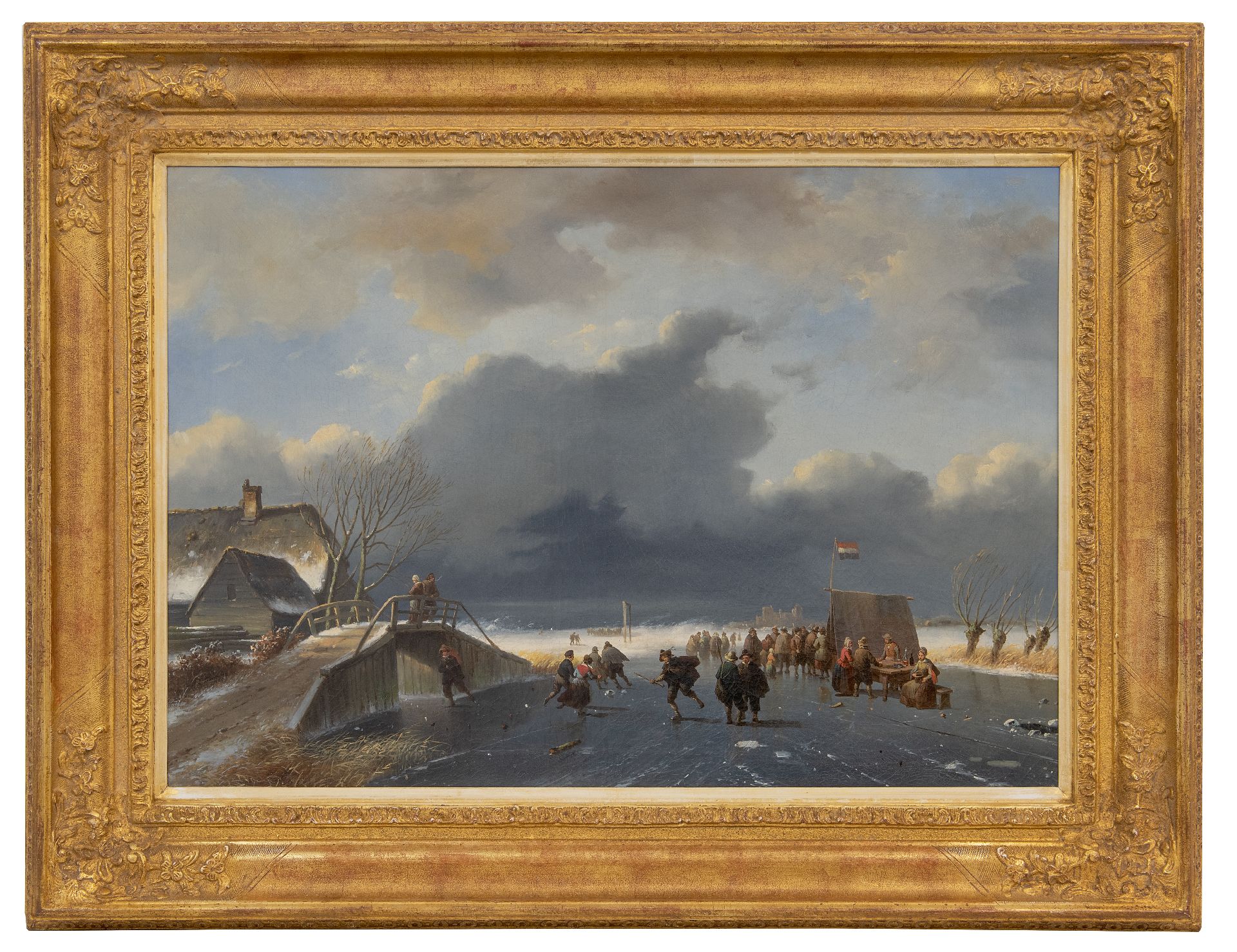 Nicolaas Johannes Roosenboom/Eugène Verboekhoven Kunstwerk • Gemälde • zu verkaufen Eisvergnügen bei näherendem Schneesturm (Figuren sind von Eugène Verboeckhoven)