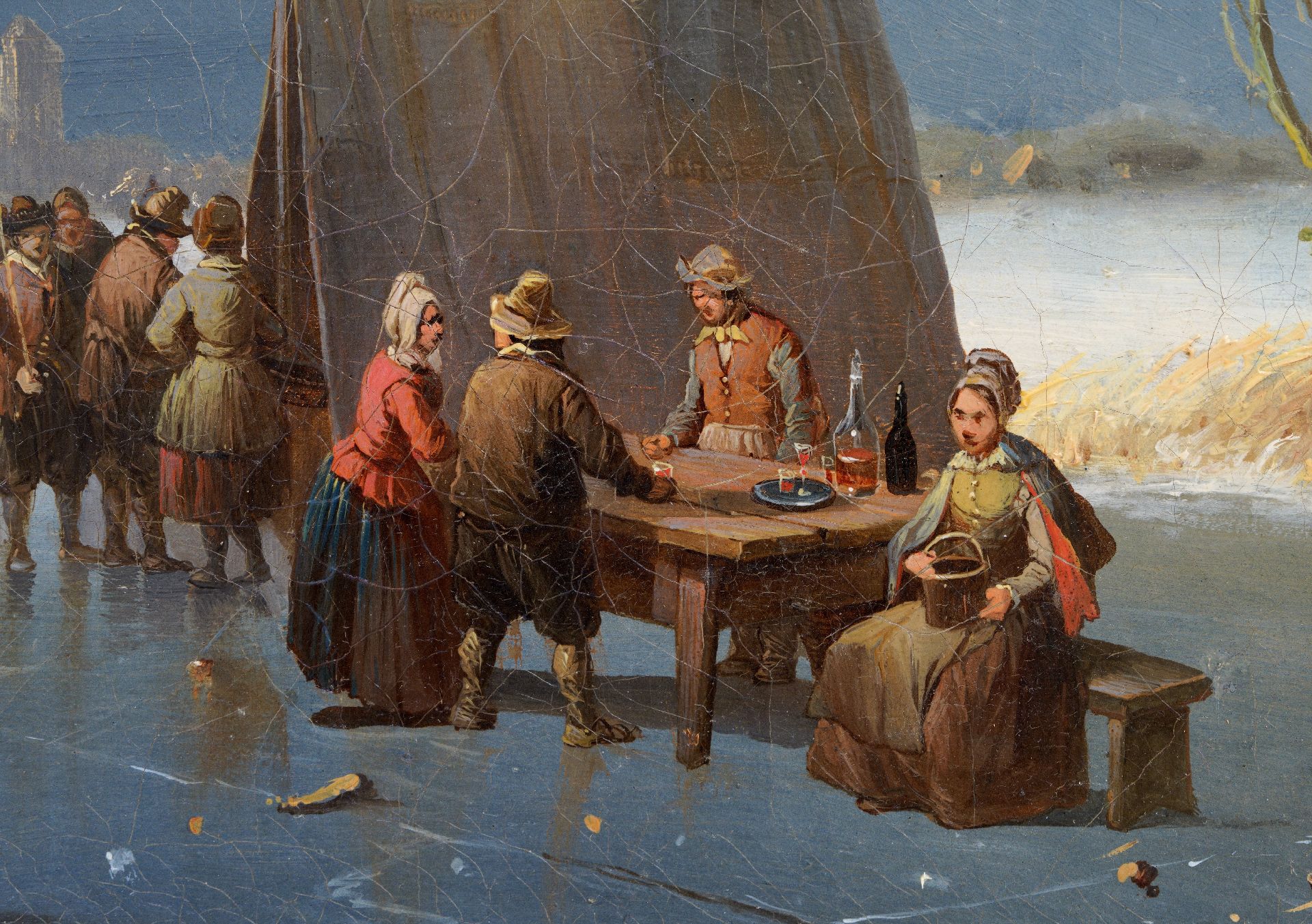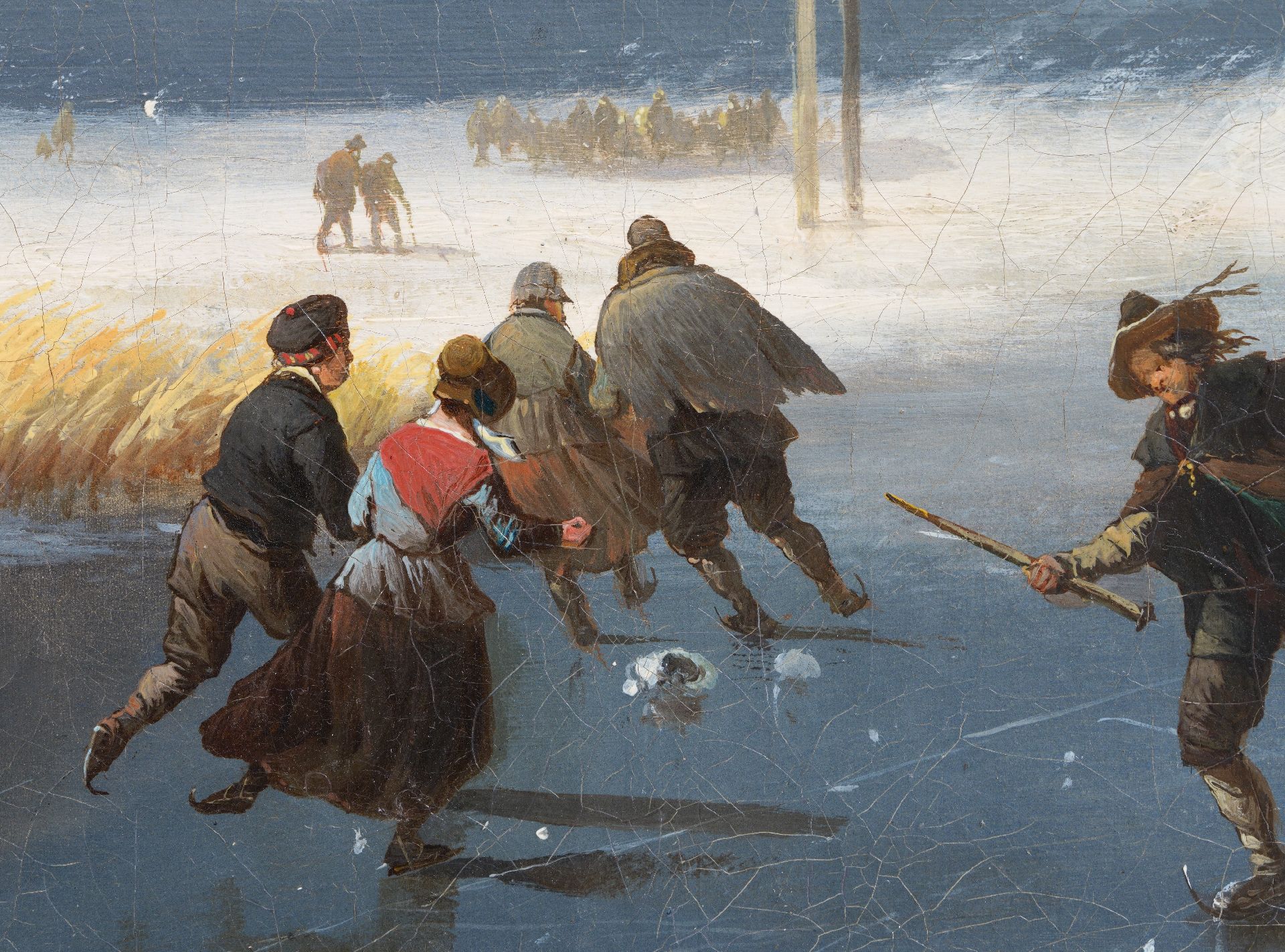 Eisvergnügen bei näherendem Schneesturm (Figuren sind von Eugène Verboeckhoven)