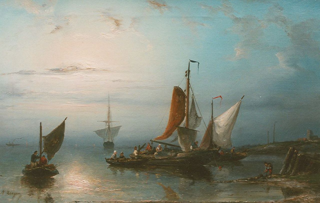 Nicolaas Riegen Kunstwerk • Gemälde • zuvor zu verkaufen Shipping in an estuary