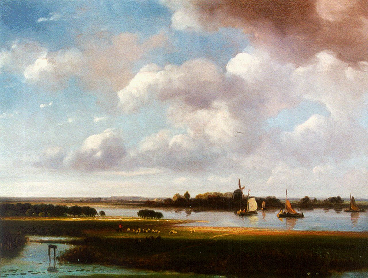 Nicolaas Roosenboom Kunstwerk • Gemälde • zuvor zu verkaufen A river landscape