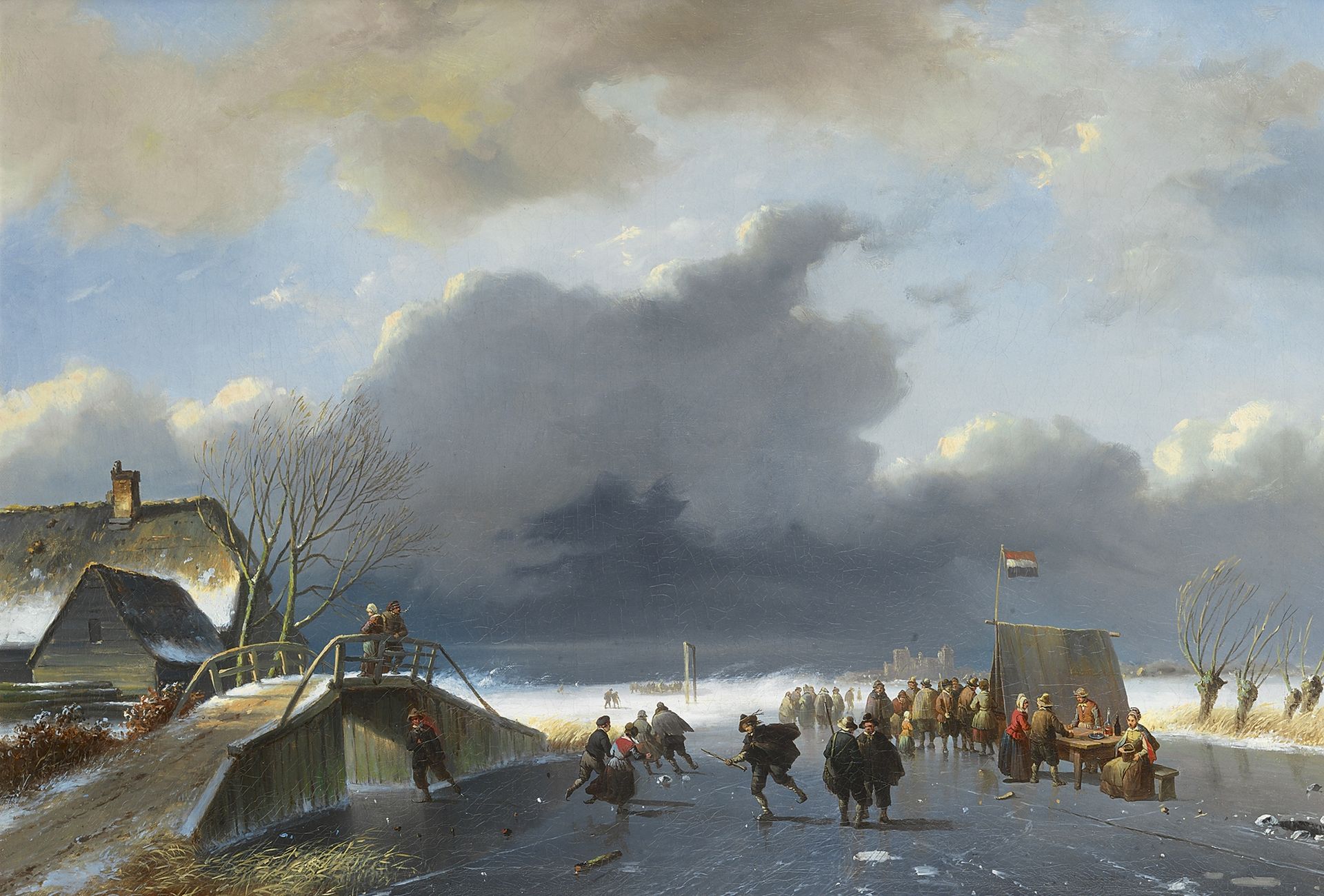 Nicolaas Roosenboom Kunstwerk • Gemälde • zuvor zu verkaufen Eisvergnügen bei einer 'koek-en-zopie'-Bude