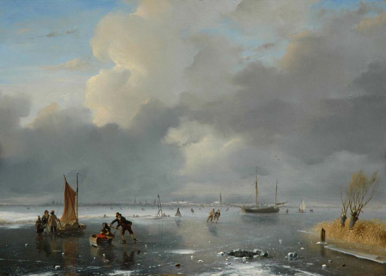 Nicolaas Roosenboom Kunstwerk • Gemälde • zuvor zu verkaufen Skaters on the Haarlemmermeer