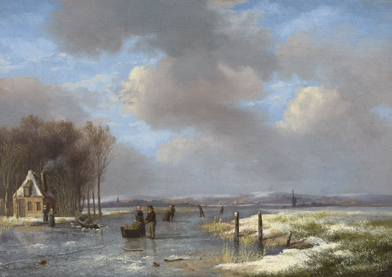Nicolaas Roosenboom Kunstwerk • Gemälde • zuvor zu verkaufen Winterliche Flusslandschaft