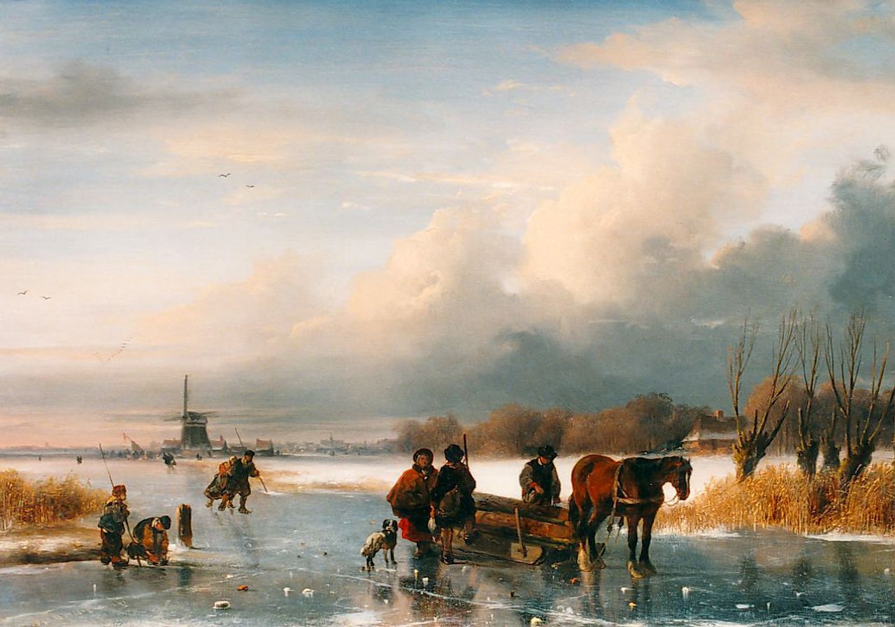 Nicolaas Roosenboom Kunstwerk • Gemälde • zuvor zu verkaufen Figures and a 'koek en zopie' on the ice