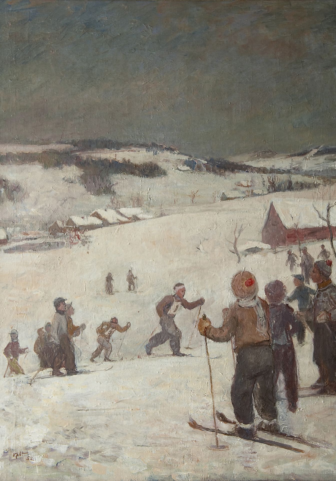 Oldřich Oplt Kunstwerk • Gemälde • zuvor zu verkaufen Das Skirennen