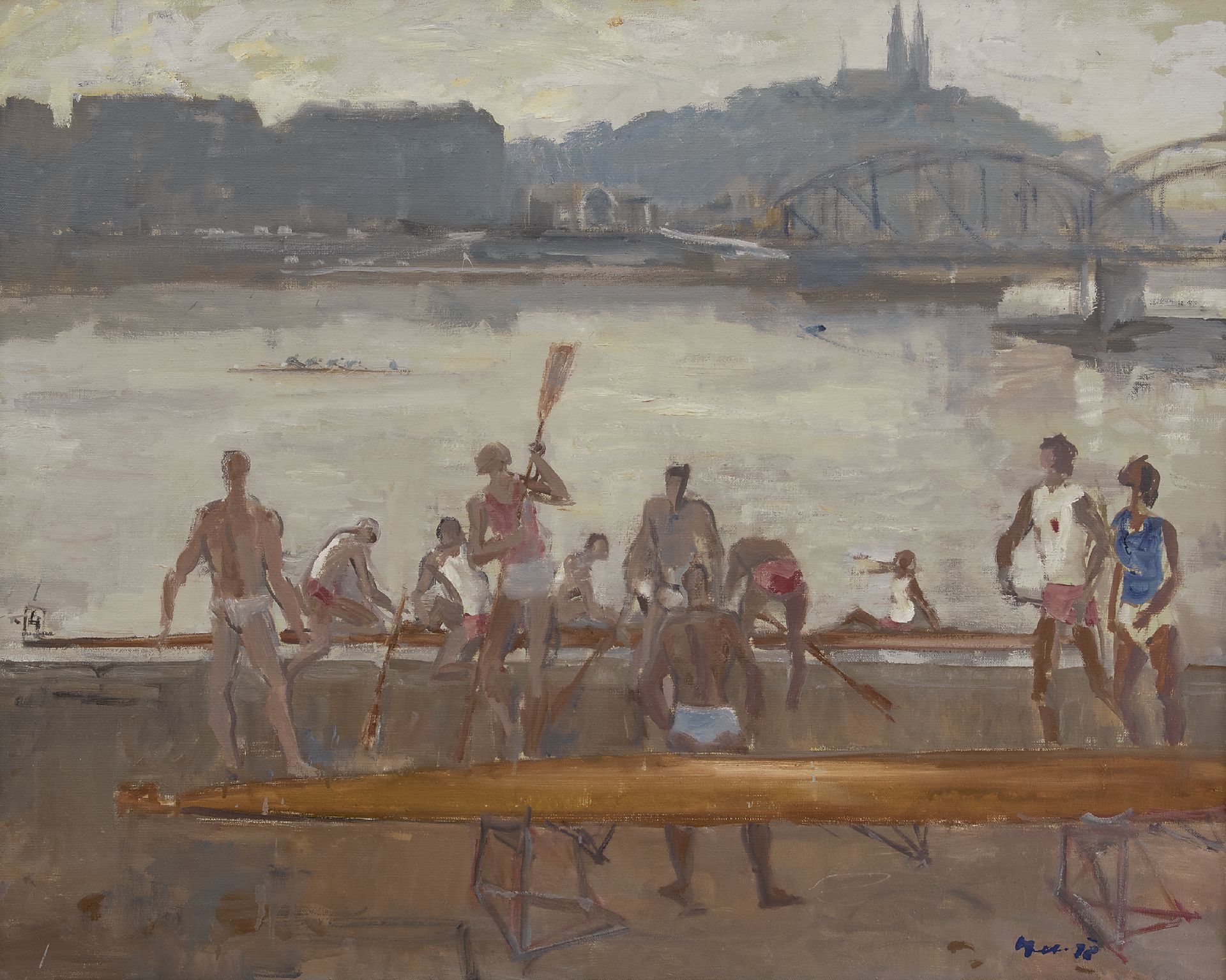 Oldřich Oplt Kunstwerk • Gemälde • zu verkaufen Vor dem Ruderwettkampf, Prag