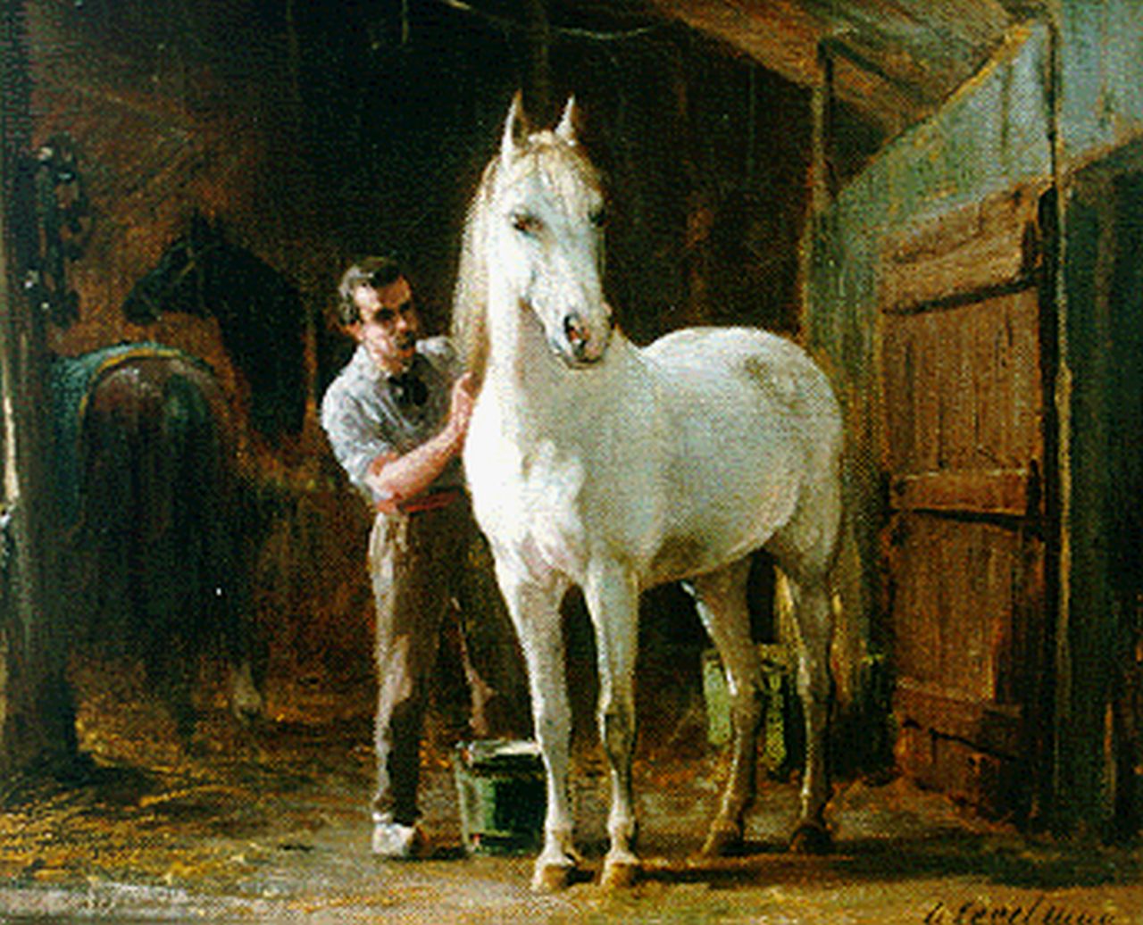 Otto Eerelman Kunstwerk • Gemälde • zuvor zu verkaufen A grey in a stable