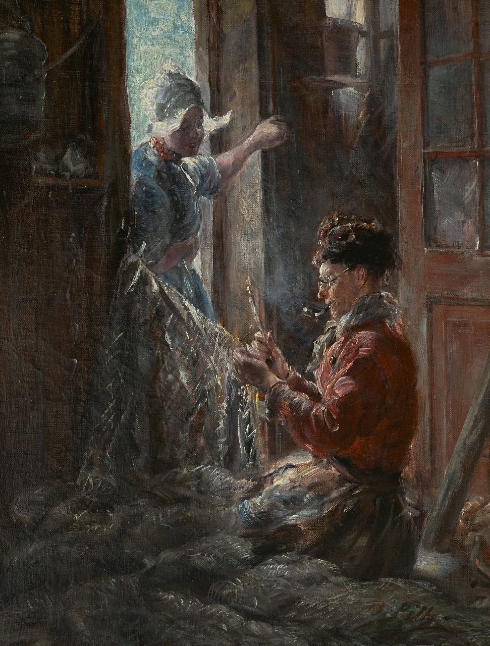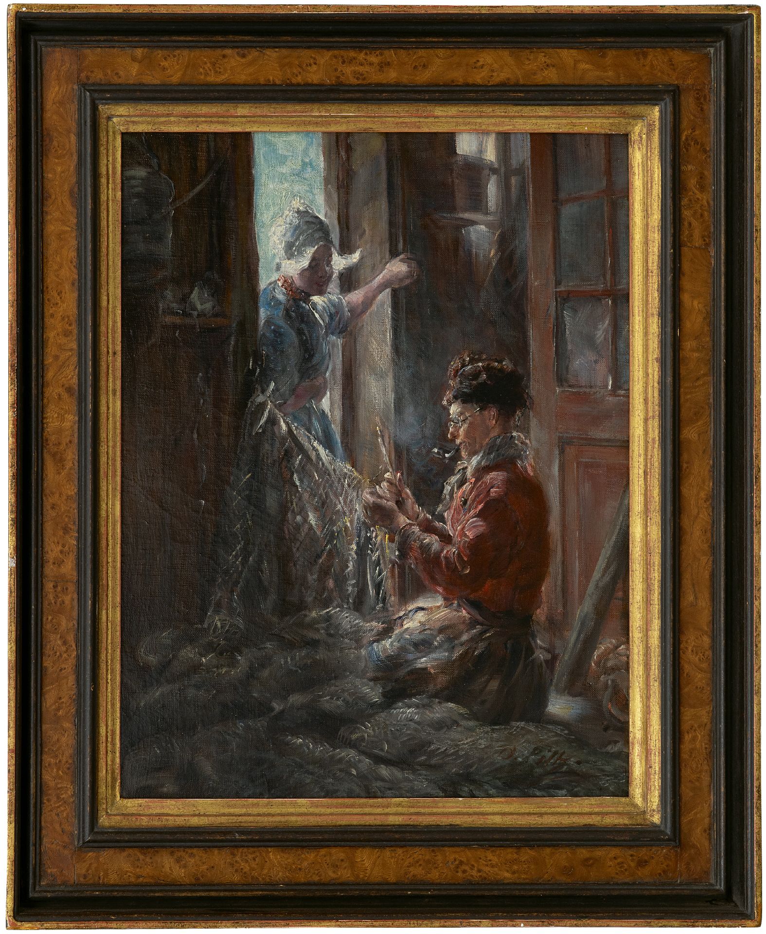 Otto Piltz Kunstwerk • Gemälde • zuvor zu verkaufen Netze flicken