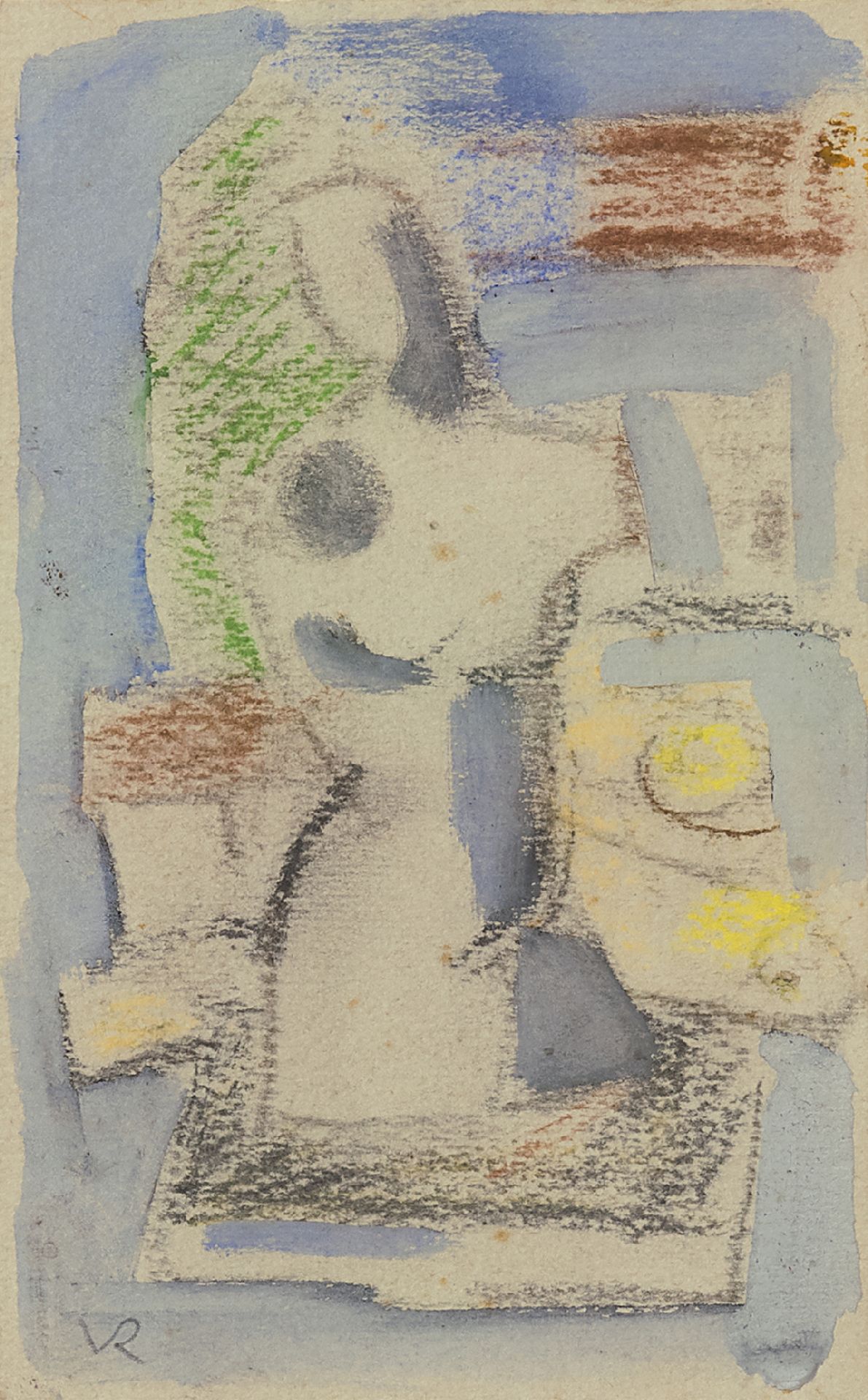 Kreide und Aquarell auf Papier 17,5 x 11,5 cm, zu datieren um 1949