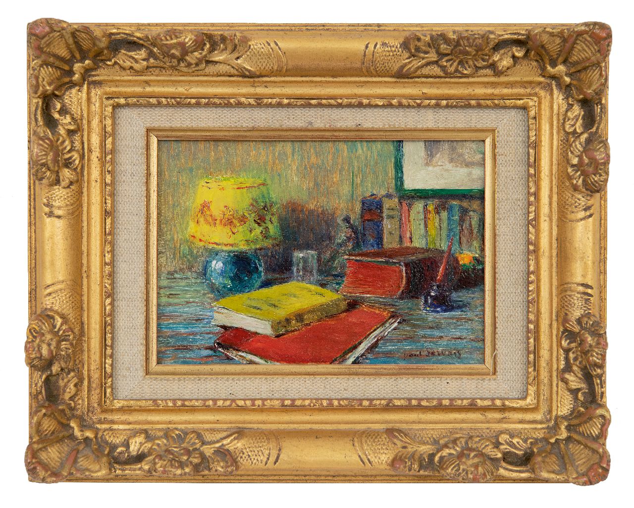 Paul Jean Louis Gervais Kunstwerk • Gemälde • zuvor zu verkaufen Stillleben mit Büchern und Lampe