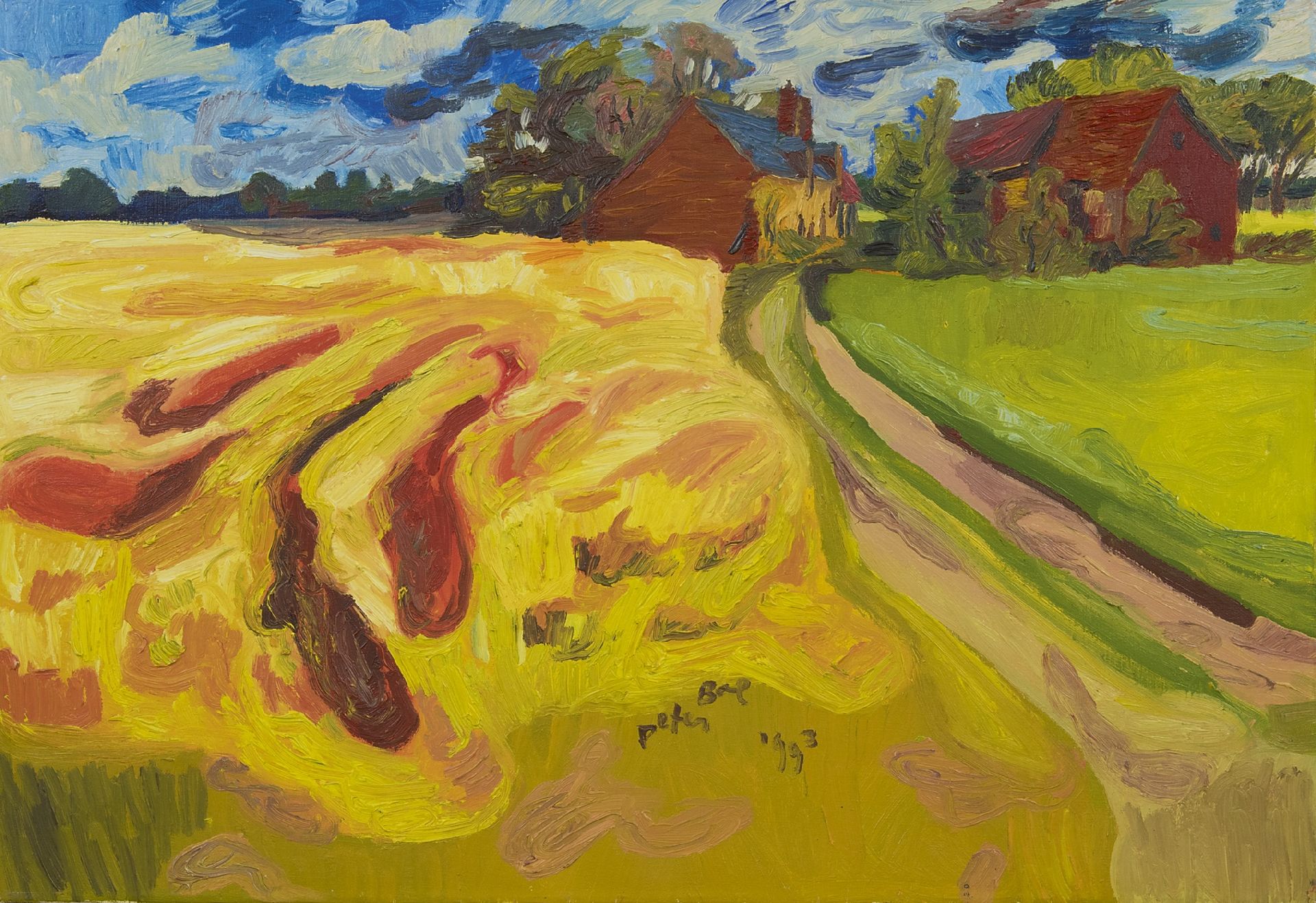 Peter Bol Kunstwerk • Gemälde • zuvor zu verkaufen Getreidefeld mit Bauernhöfen