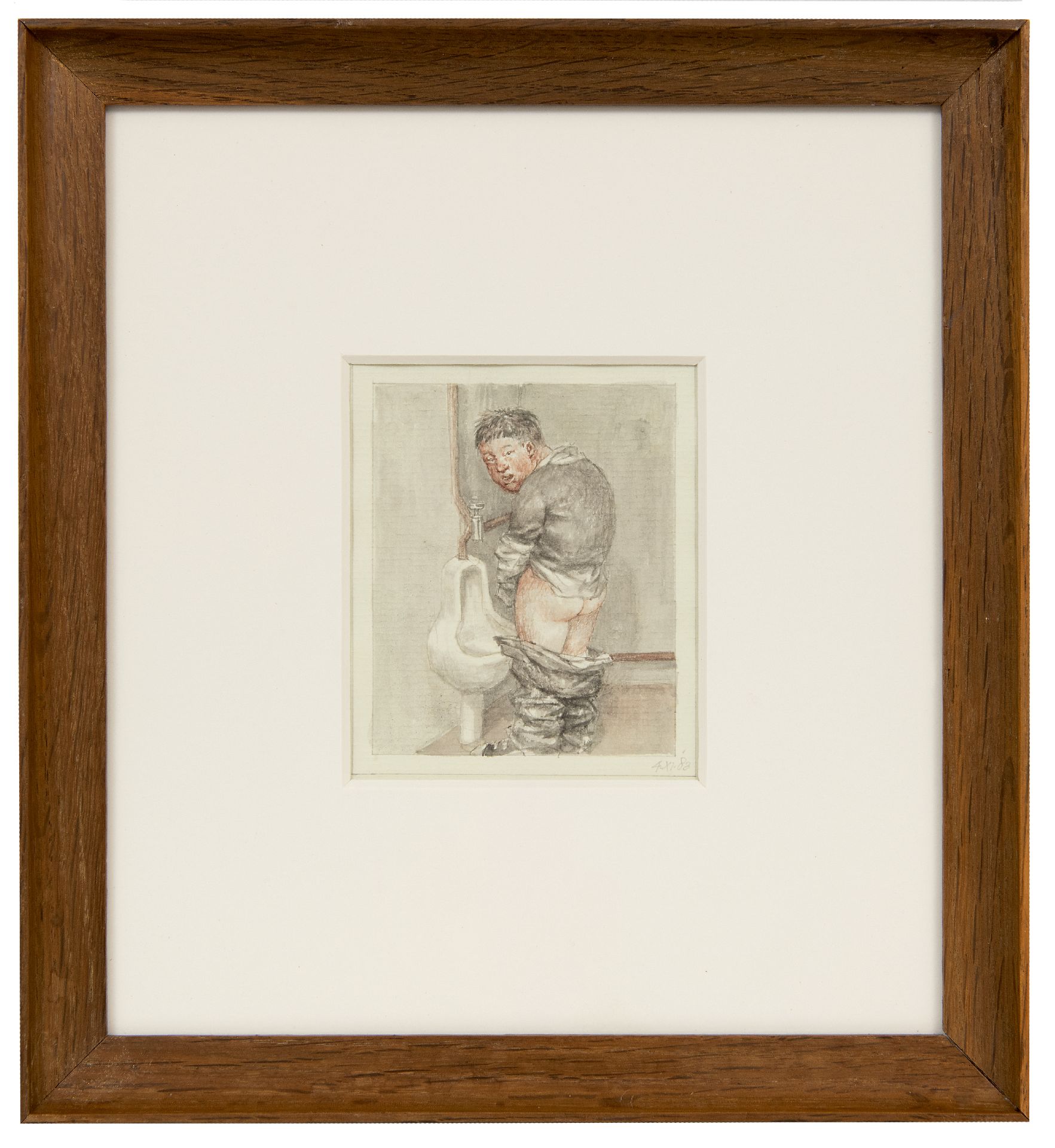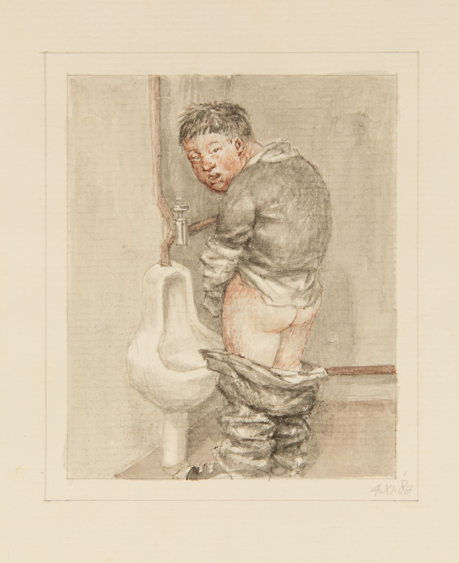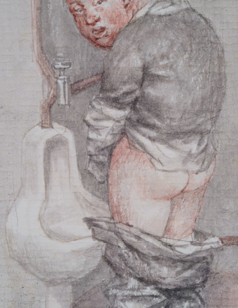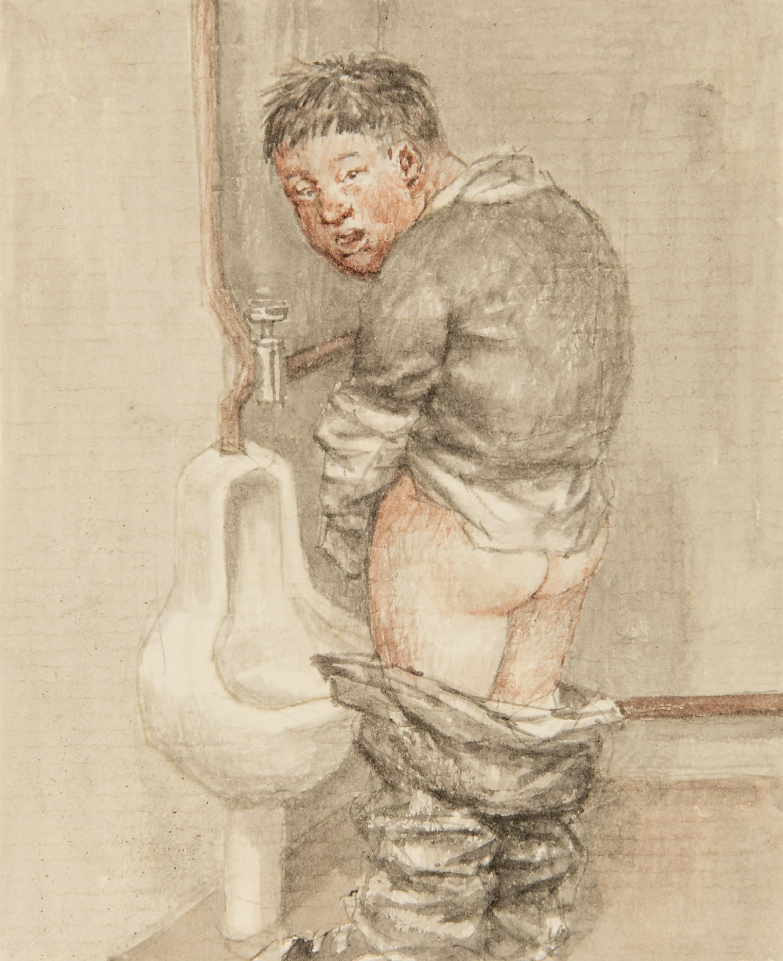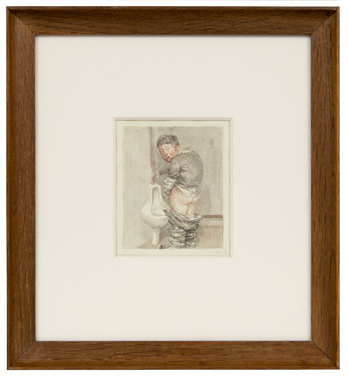 Peter Vos Kunstwerk • Aquarell • Zeichnung • zu verkaufen Pinkelnder Mann