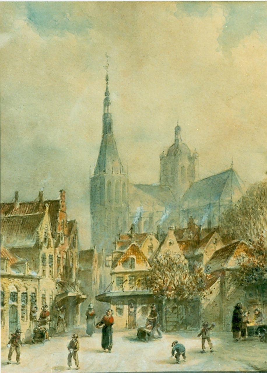 Petrus Gerardus Vertin Kunstwerk • Aquarell • Zeichnung • zuvor zu verkaufen A view in a snowy town