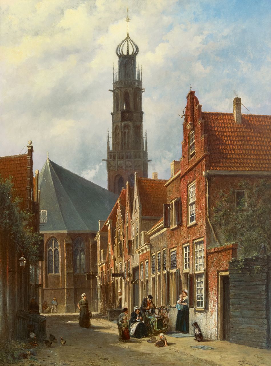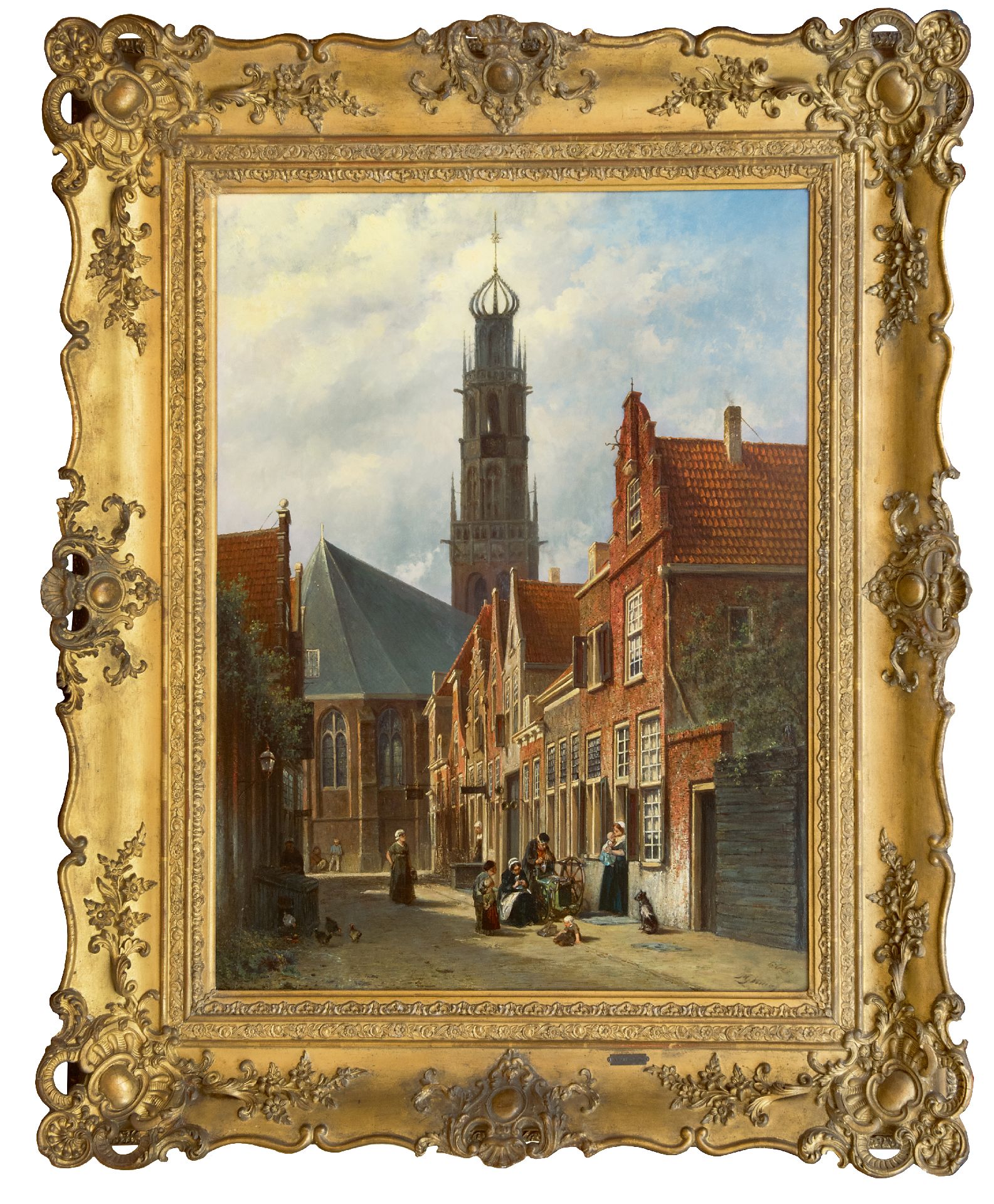 Petrus Gerardus Vertin/Charles Rochussen Kunstwerk • Gemälde • zu verkaufen Ansicht auf Haarlem mit der Bakenesserkirche