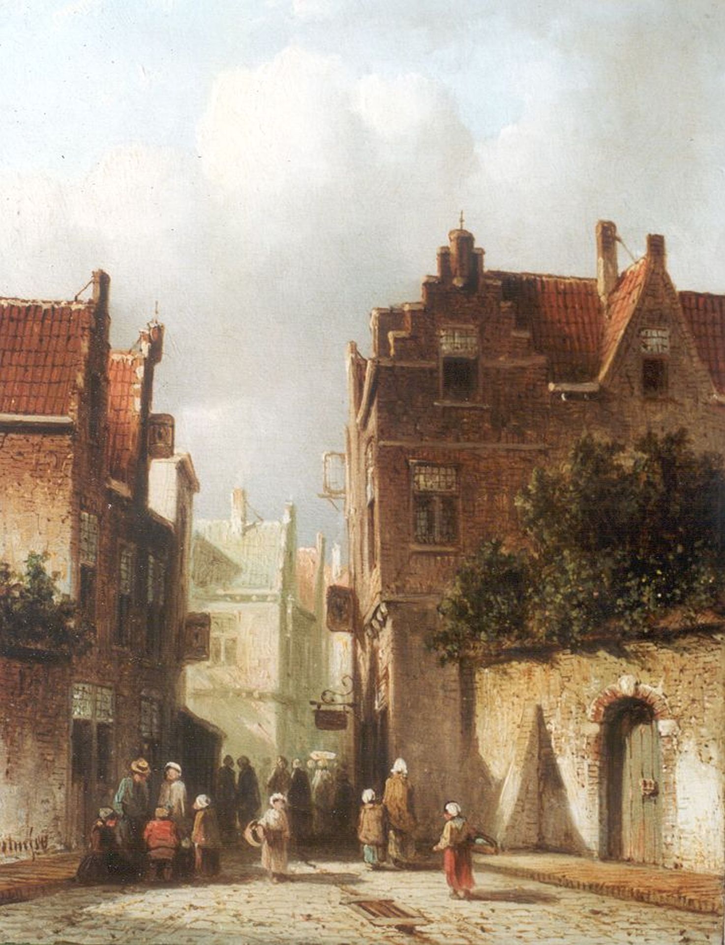 Petrus Gerardus Vertin Kunstwerk • Gemälde • zuvor zu verkaufen A Dutch town with figures in a street