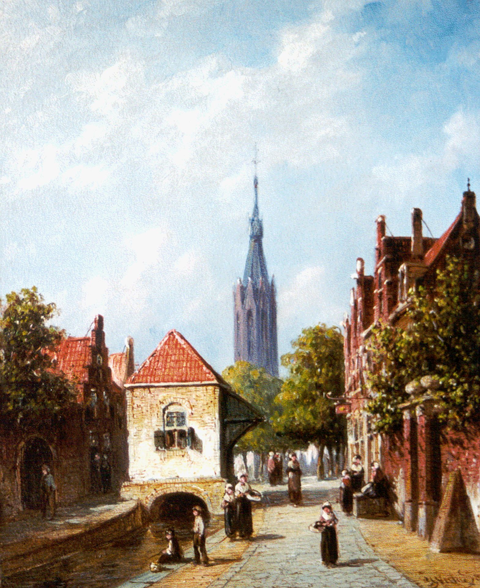 Petrus Gerardus Vertin Kunstwerk • Gemälde • zuvor zu verkaufen A town view of Delft with the Nieuwe Kerk beyond