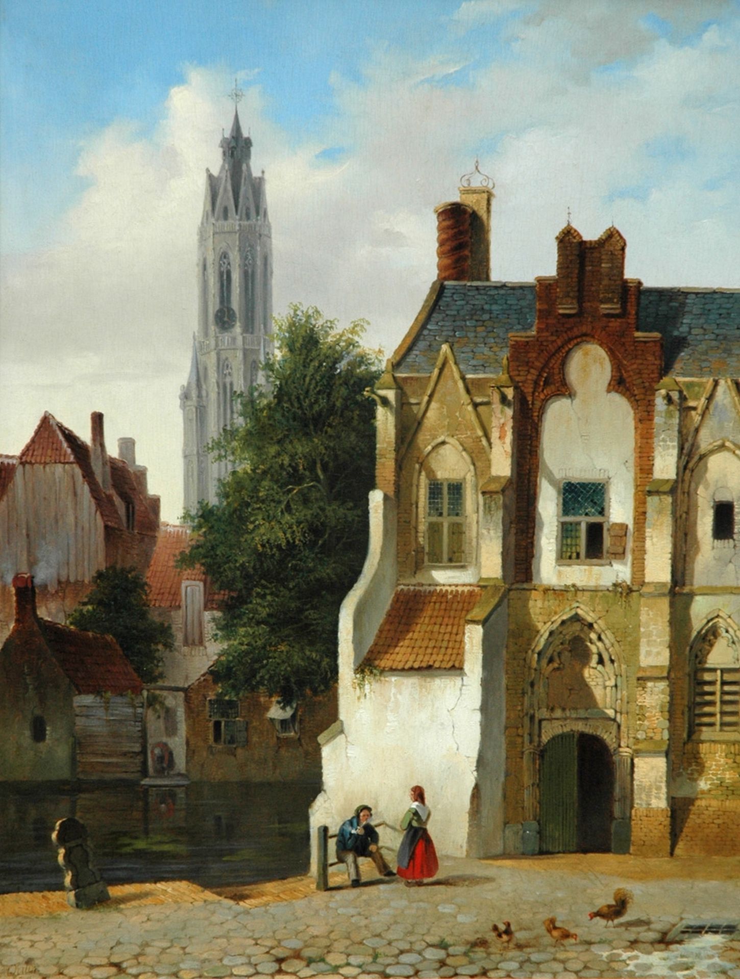 Petrus Gerardus Vertin Kunstwerk • Gemälde • zuvor zu verkaufen A view of Delft with figures in summer