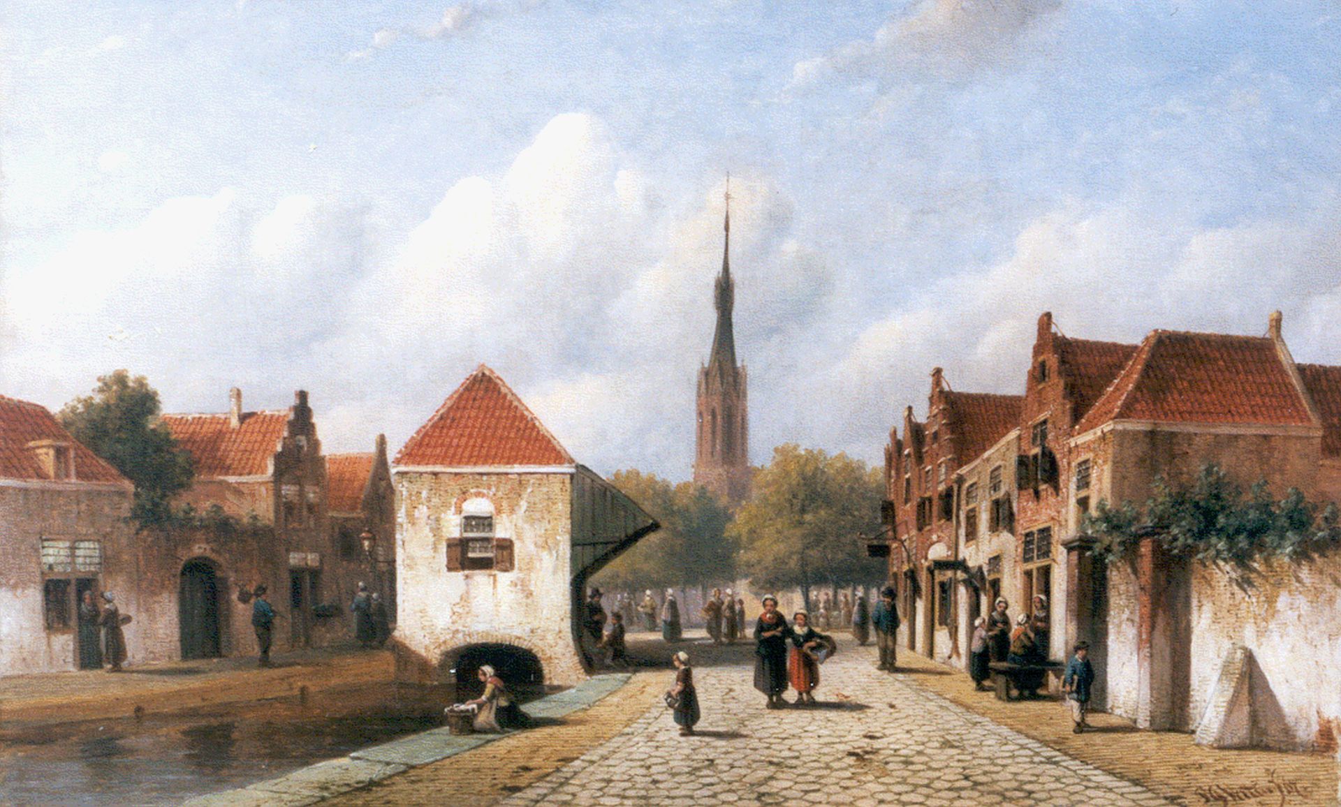 Petrus Gerardus Vertin Kunstwerk • Gemälde • zuvor zu verkaufen A view of Delft with the 'Nieuwe Kerk' in the background